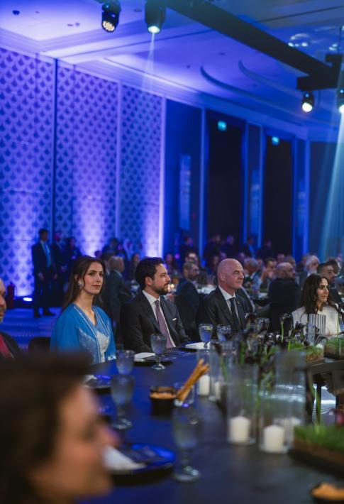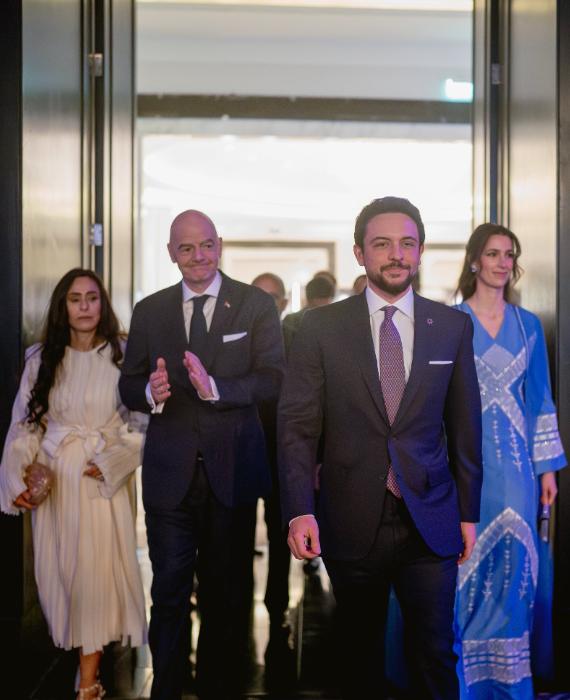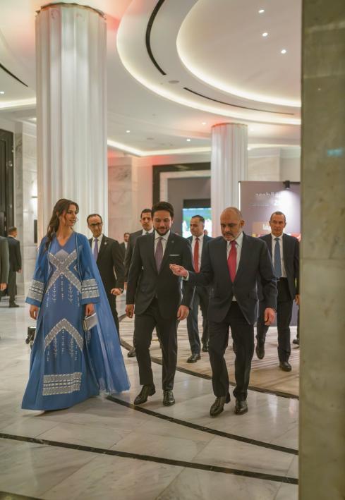 约旦王储夫妇合体亮相,拉杰瓦穿着蓝色传统服饰裙,走路带风堪比T台上的超模!11月25日侯赛因王储携手拉杰瓦王储妃一起出席约旦足球协会成立75周年庆典,让人没想到的是拉杰瓦穿着蓝色印花长裙,外面还穿着同色系斗篷风衣,走路时裙摆随风飘动,太带感了吧! 这位王储妃虽说没有婆婆颜值高,但长得也不差,颜值与身材并存,走到哪里都让王储老公很有面儿,新造型走在侯赛因王储旁边,宛如女王驾到,气场更是堪比超模走秀。