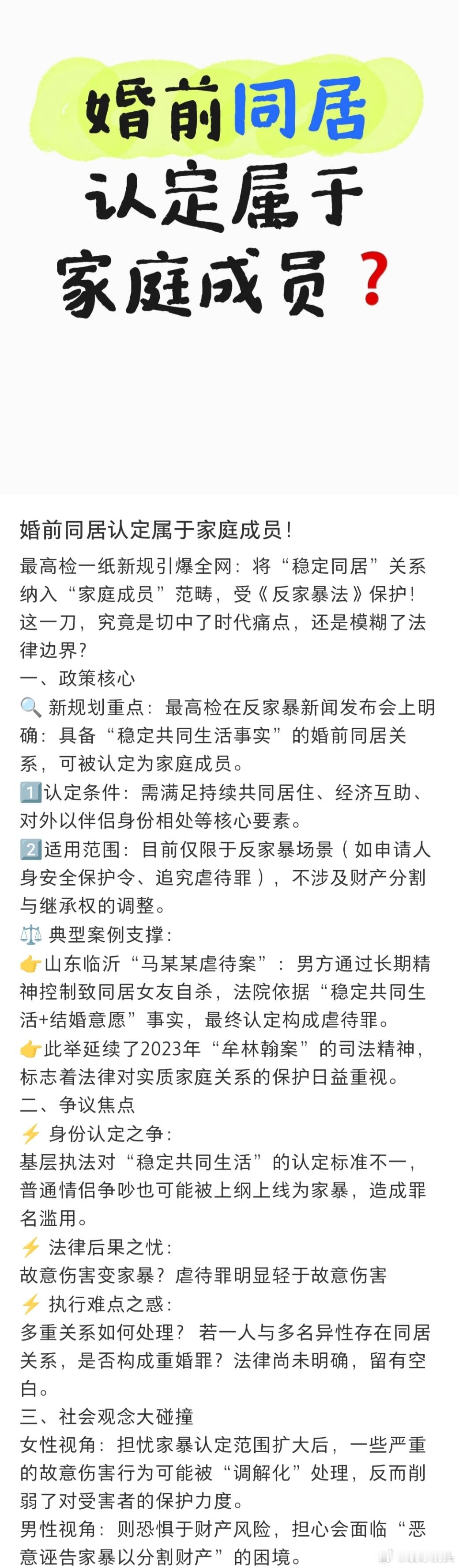 婚前同居认定属于家庭成员家庭成员之间的违反犯罪活动,法律上很多时候是会酌情判理你的。要是婚前同居就认定为家人,伤害家人是家暴,说不定判的没有故意伤害高。另外,财产方面也容易扯皮……问题还是很多的。