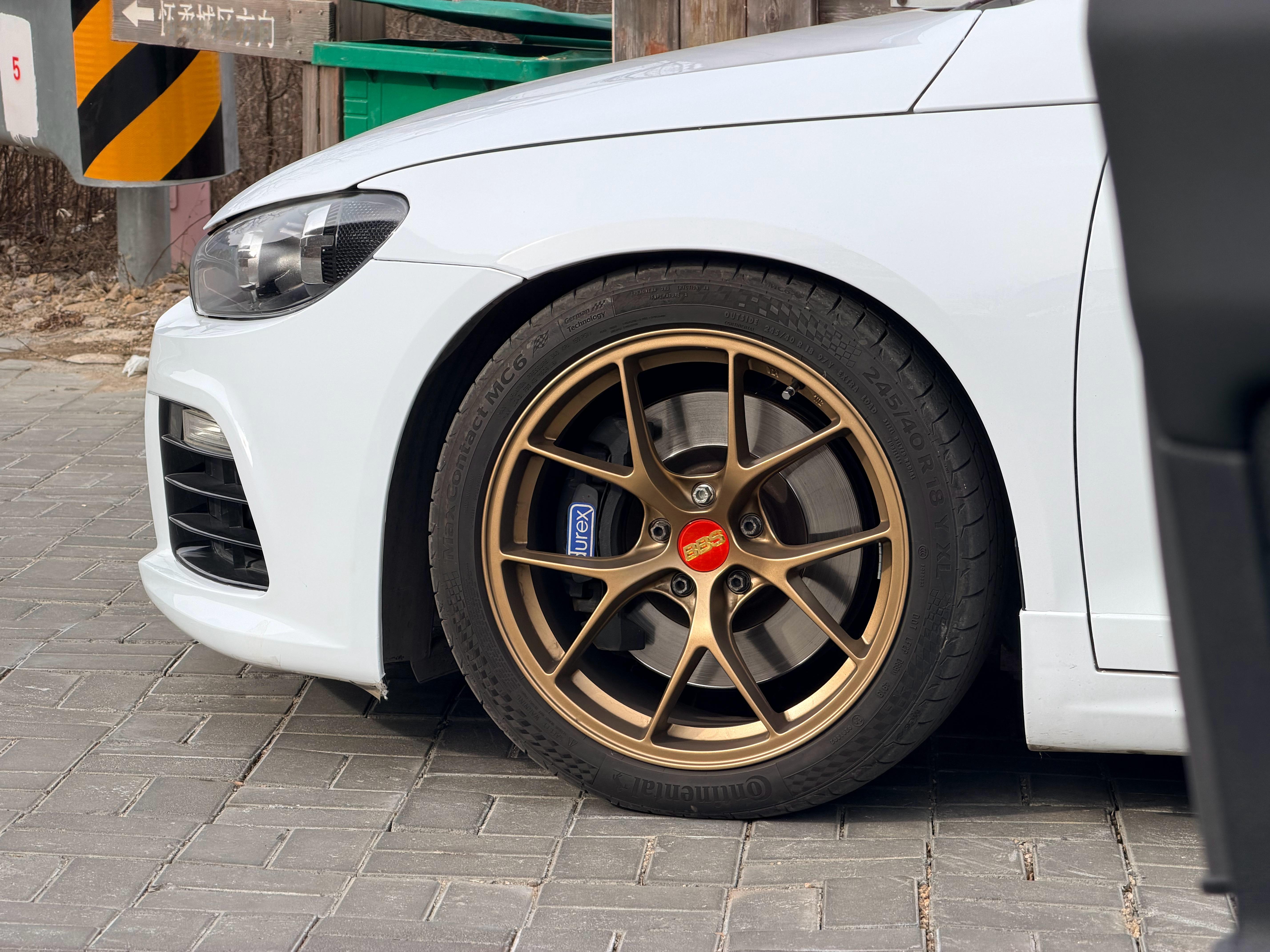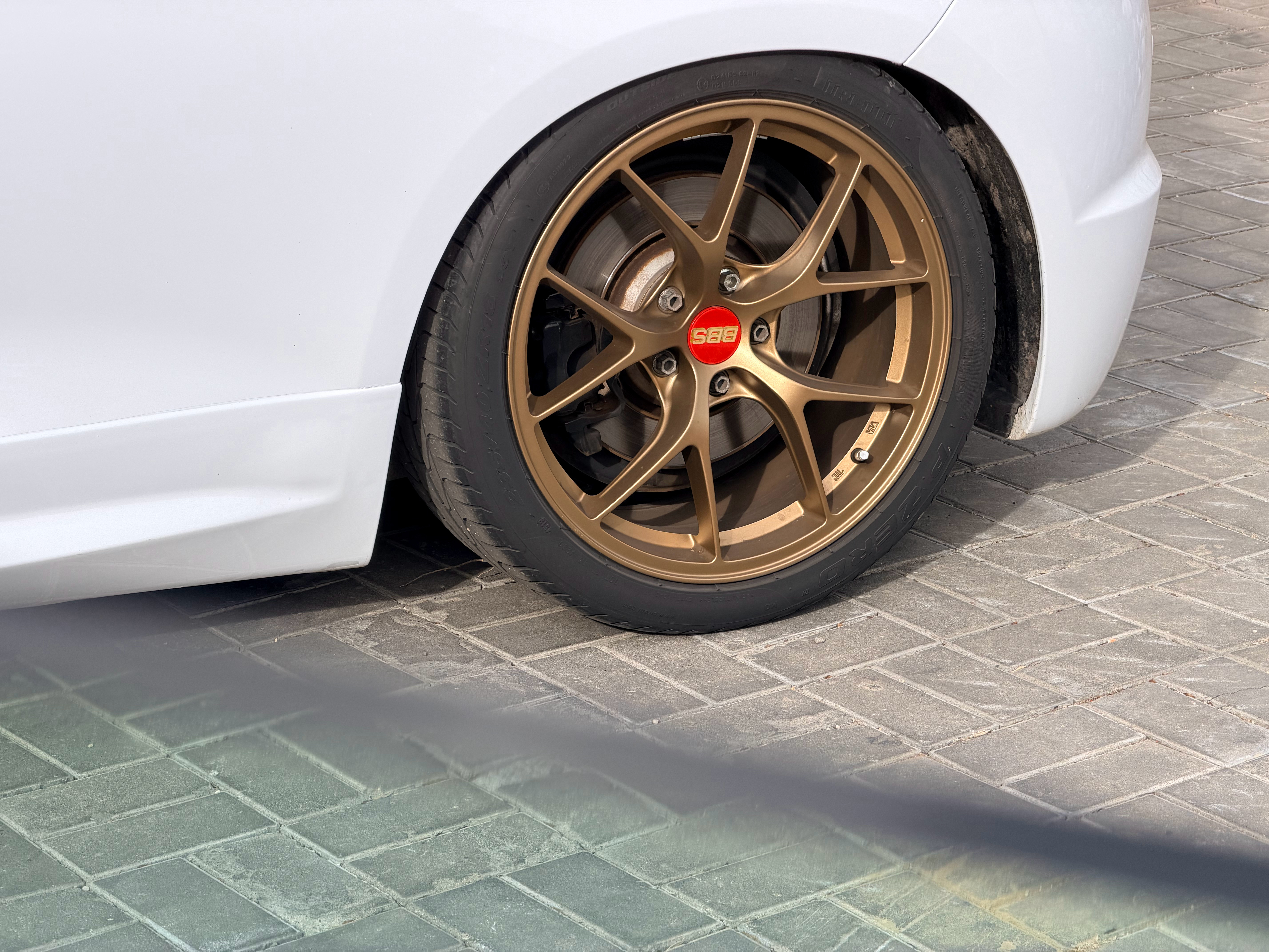 管理员大爷大妈这车改得挺不错的。BBS金色大轮毂,杜蕾斯卡钳,低趴车身,大尾翼,大排气~