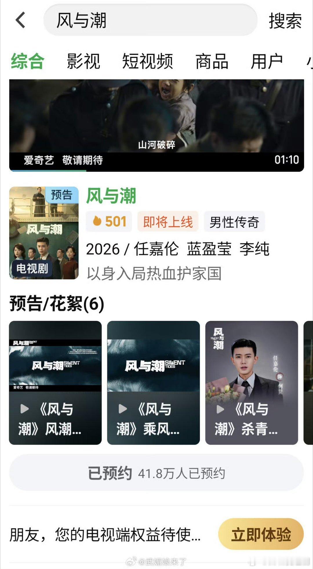 《风与潮》爱奇艺封面、头像、简介都换了要来了吗?很想看这部,上🐏的话可以在家和家人一起追剧了,家庭活动🈶