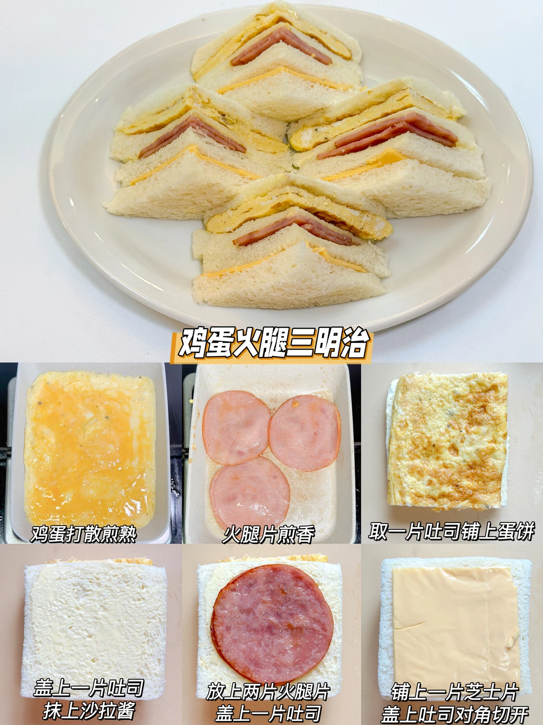 食材:鸡蛋、火腿片、吐司、芝士片、沙拉酱