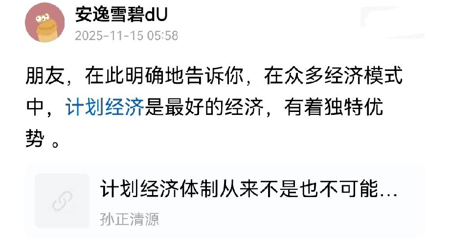 有人郑重其事地告诉别人:“在众多经济模式中,计划经济是最好的最有优势的”。 实践是检验真理的唯一标准。前苏联,前华约,今朝鲜,今古巴,有目共睹。如果非要横向对比,有前东德西德,有南韩北韩,一目了然。 不要争论主义了,别折腾。最近这三十年是我们民族的伟大时刻,也是千载难逢的契机,把心思花在正道上,继续展现奇迹,不好吗?