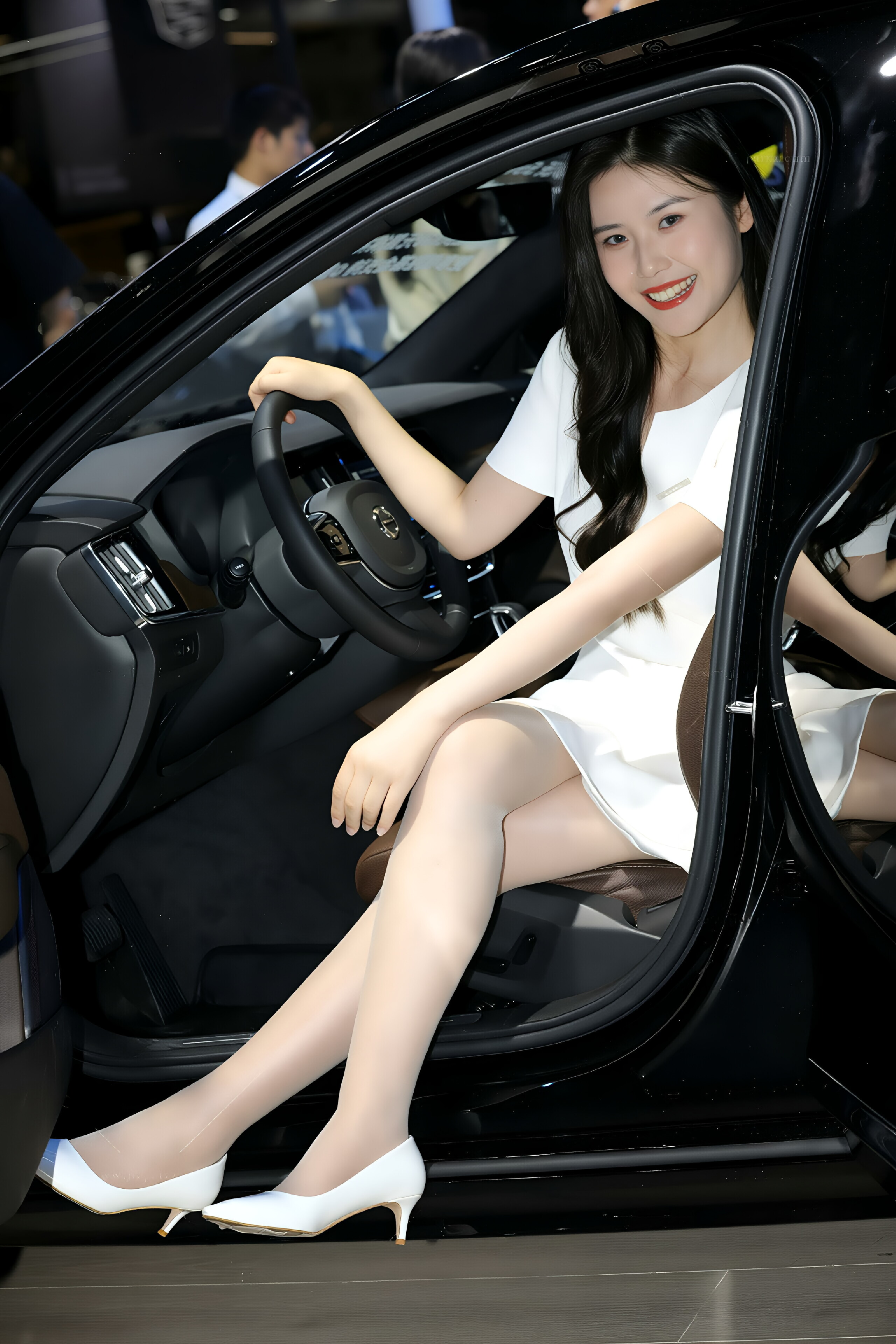 车展现场的“美貌暴击”来了!白衣小姐姐往车里一坐,优雅坐姿直接把车秒变时尚秀场。那双白色细跟鞋一蹬,网友:这腿精本精,车门都快被颜值焊死啦!