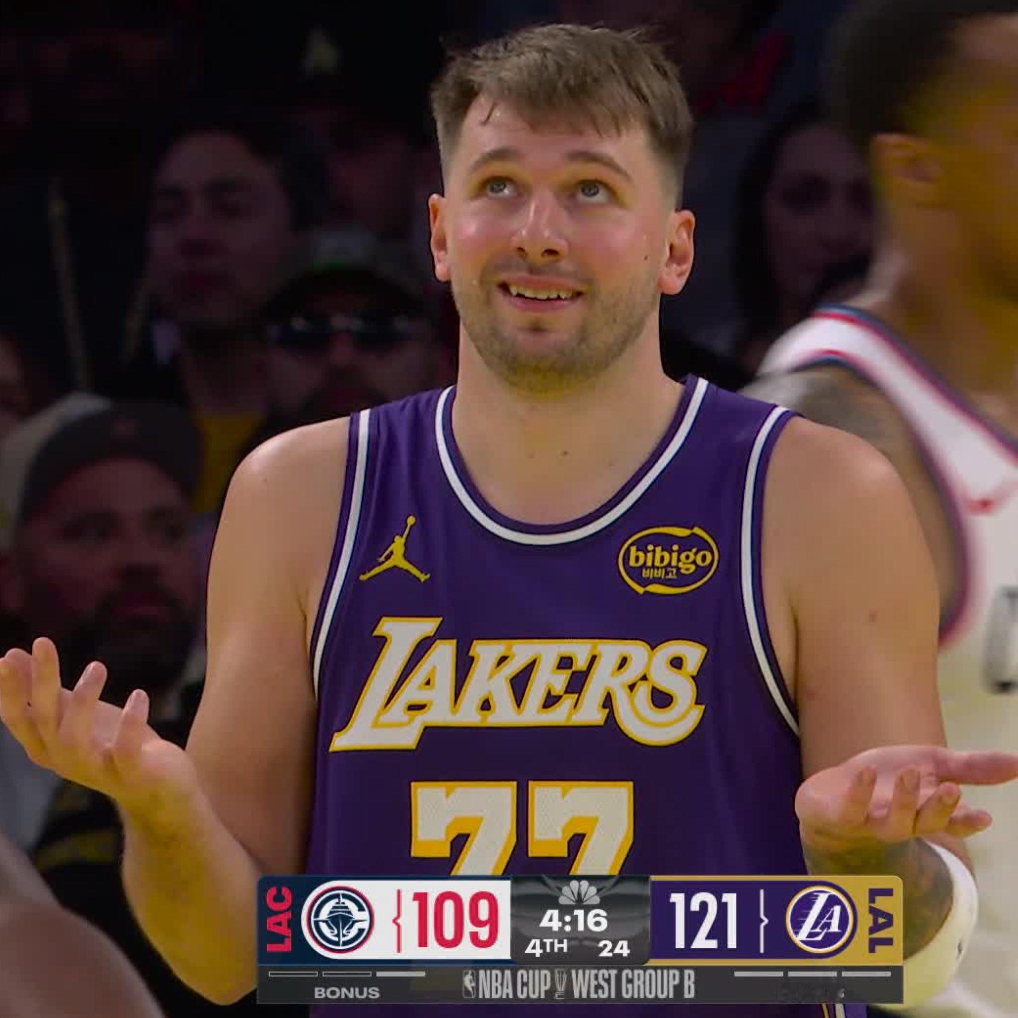 湖人轻取快船拿到五连胜,同时提前晋级NBA杯淘汰赛,近9次洛城德比赢下第7场。东契奇+詹姆斯+里夫斯=99分24篮板22助攻,三分52.4%,三核驱动。哈登空砍29+9+5,在场37分钟只输1分。快船一次又一次重复同样的故事,他们已经5胜13负,这是球队自格里芬新秀赛季以来在50%以下胜率最多的一次。哈登表示:给我6000万,再让我年轻6岁,这比赛我还能搏一搏给你看...洛城德比NBA