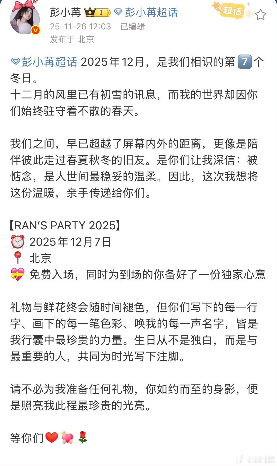 彭小苒 抽奖 妈耶免费生日会!还送粉丝礼物,彭小苒是谁唯一的姐啊,喜欢彭小苒别太幸福了我说