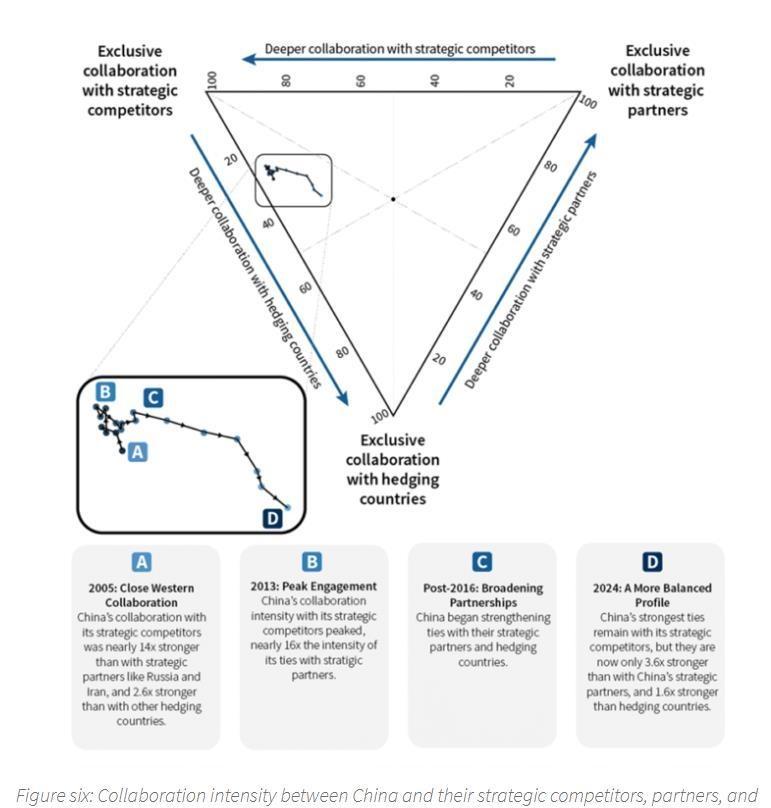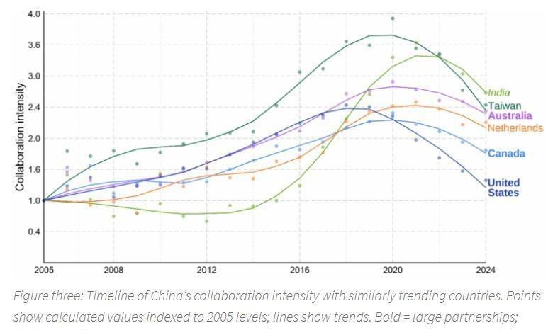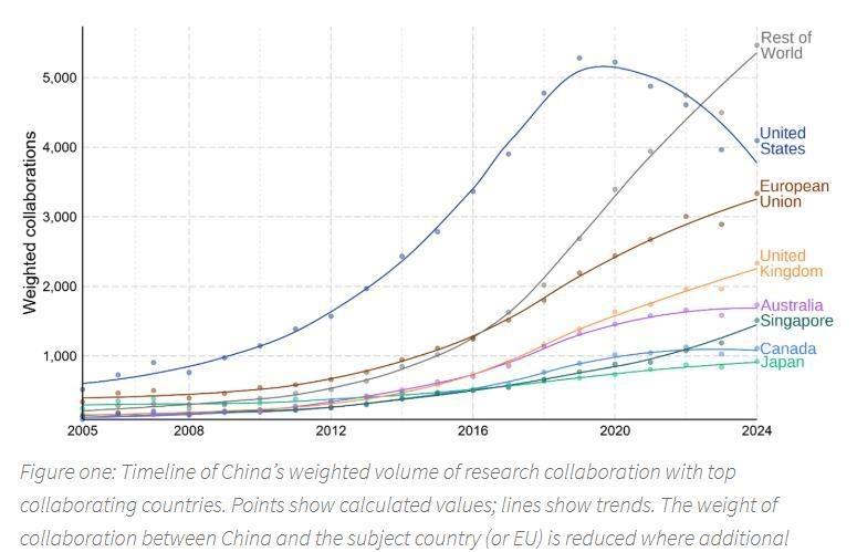 ASPI《关键技术追踪》:中美科技研究正快速脱钩--- 澳大利亚战略政策研究所的最新分析显示,中美及其盟友之间的关键技术科研合作正在加速脱钩。过去十多年出台的限制政策正在产生明显效果。 研究显示,中美科技合作在2019年达到峰值,随后明显下滑。美国仍是中国最大的科研合作伙伴,但合作强度正回到2005年的水平。转折点与美国启动“中国行动计划”等关注科研安全的政策同步,而随着与美合作减少,中国加强了与巴基斯坦、沙特、伊朗等伙伴国的科研联系。 美国三届政府都延续了限制合作的趋势。拜登政府重新谈判中美科技协议、收紧合作范围,而国会也推动恢复“中国行动计划”,强调防范知识产权和科研成果被转移至中国。 ASPI统计分析了700万篇论文,数据表明中国科研产出从2005年全球占比13%增至近40%,其在全球科技体系的中心地位使其国际合作长期增长,但自2019年开始反转。 合作强度的变化: 调整研究总量后,中美合作的下降更为显著。 巴基斯坦从几乎零合作跃升为中国最密切合作伙伴之一,在纳米材料等领域合作尤为突出。 沙特、白俄、伊朗等国也大幅提升与中国的合作强度。 俄罗斯在经历短暂下滑后,自2010年代后期显著回升。 西方逐步收缩对华科研合作: 澳大利亚自2018年起强化研究安全审查,涉及中国合作项目的资金从2019年的9000万澳元降至2024年的3300万。 英国自2021年推进对中科研关系全面审查,与中国合作的科研经费几乎归零(从2016年的1.12亿英镑降至2022年的40万)。 新西兰虽对华相对温和,也在2023年调整科技合作范围,剔除纳米技术和超导等敏感领域。 与此形成对比的是: 意大利因本国科研资金短缺,自欧债危机后逐渐加深与中国的合作,被视为中国“科研国际化战略”典型案例。 全球科研版图的重组: ASPI将各国分为“三类”:中国的战略伙伴(俄、巴基斯坦等)、竞争者(美、日、英)以及“中间国家”。数据显示,自2016年起,中国的科研合作对象明显“去西方化”,向战略伙伴和中间国家倾斜。 这一趋势意味着: 西方如果持续脱钩,可能不仅失去中国科研成果,也失去对全球技术发展方向的影响力。 要避免科技体系彻底分裂,西方需要在可信网络、共享标准和技术分工基础上重塑合作模式,而不仅仅是“脱钩”。 飞扬军事超话 烽火问鼎计划