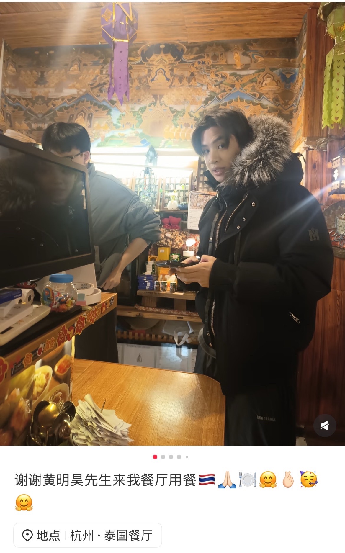 杭州餐厅偶遇黄明昊网友杭州餐厅偶遇黄明昊去吃泰国菜的小贾,想偶遇