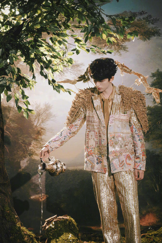 黄子弘凡演唱会身着Rahul Mishra特别定制的金色飞鸟刺绣套装,解锁全新高定。金光闪闪的一身十分耀眼,时尚感满满