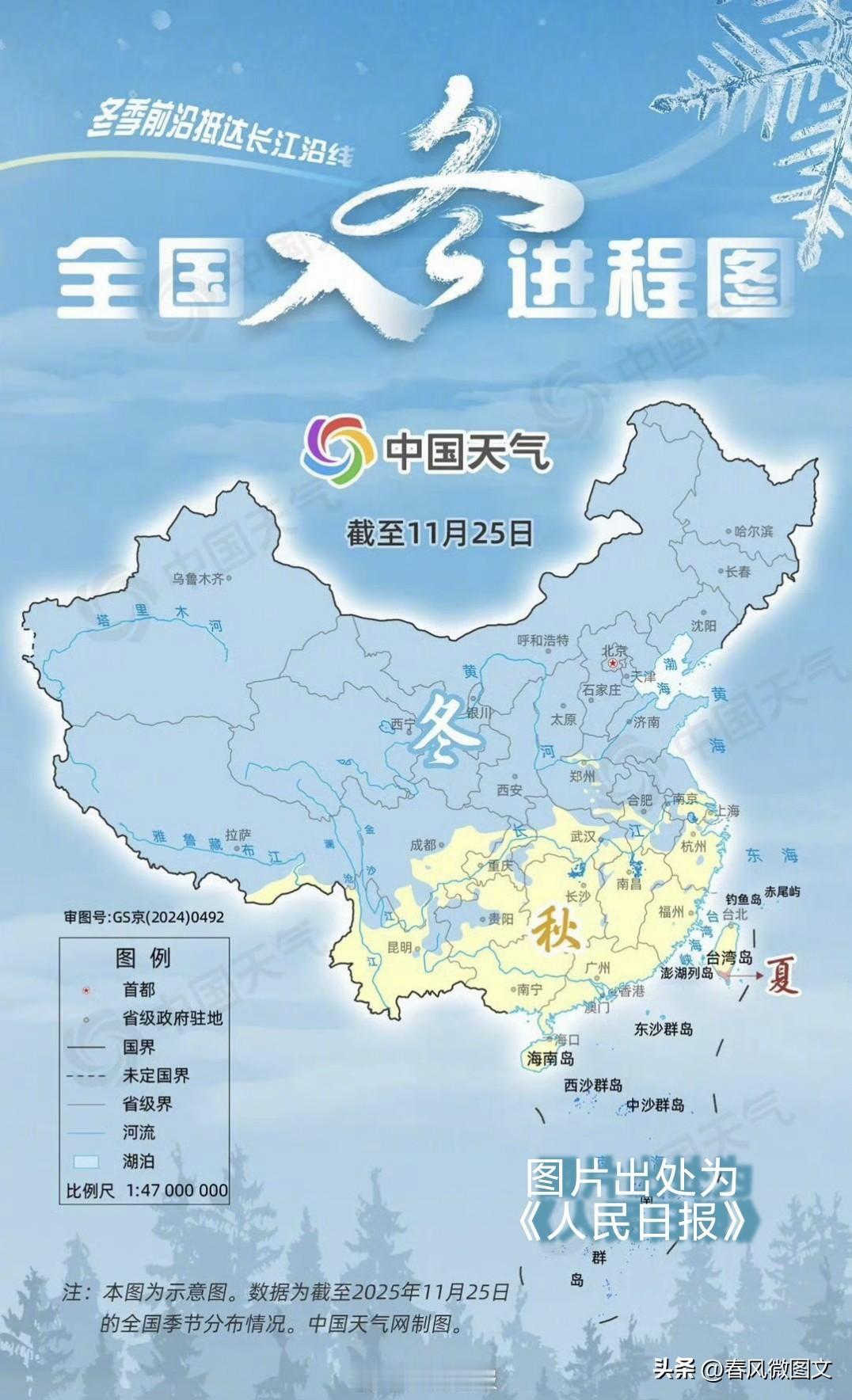 【最新版全国入冬进程图 你的家乡入冬了吗?】 近期冷空气频繁,我国冬季版图迅速扩张,南方多地提前入冬。最新数据显示,冬季已覆盖超过一半国土面积,而湖南、江西、浙江、广西、广东、福建等地仍处于秋天。 未来一周,南方昼夜温差显著大于常年同期,建议采用“洋葱穿衣法”,早晚加强保暖,中午方便穿脱。 你的家乡入“冬” 了吗? 冬季版图过半 南方昼夜温差大 全国降温图 全国降温预报图 入冬时间表 评论区聊聊,你家入冬了吗? (来源:中国天气网 )
