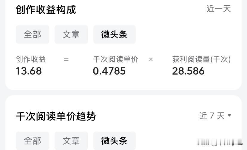 前天写的一篇微头条总共让我赚了16块钱,这篇微头条第一天有几千的阅读,给了我2块多,昨天又跑了将近3万的阅读,给了我13块多。 真心不容易,我写这篇微头条将近花了半个小时,从确定方向,到查询相关资料,再到写好前三行,都花了不少心思。 所以成功不是偶然,是费尽心机的努力,微头条虽然字数少,但是麻雀虽小五脏俱全,要把事情介绍清楚还得让人爱看,真的需要努力。 友友们都写的咋样,评论区说说您的经验吧!