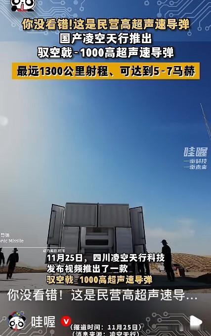 自从看了山东面条厂能手搓飞机之后,民营企业生能造出任何不可思议的东西我都不惊讶了。这不,四川的一家民营企业竟然造出了可达5-7马赫飞行速度的高超声速导弹。 这家企业名叫凌空天行科技,是四川的一家民营企业,研制的这款导弹最大射程1300公里,速度可以达到5-7马赫。 他们这款产品据有些博主说已经超越了世界上大多数国家的军工产品,这家企业原本是生产超音速飞机和发动机的,没想到竟然跨界研制高超音速导弹。 民营这词我理解,导弹我也懂,但是这俩组合在一起,真是小众。