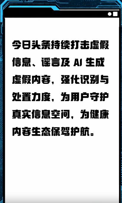 现在的AI技术太强大了,生成的文字和图片都真假难辨,但最近发现平台识别AI假消息的速度特别快,很多刚出现的虚假内容很快就被处理了。 后来才知道,平台用了专门的AI检测技术,那些用词夸张、逻辑混乱的文章,还有看起来很完美但细节有问题的图片,都逃不过系统的眼睛。 听说这套系统的识别准确率高达95%以上,真是太厉害了。 作为普通用户,我们要的就是真实可靠的信息。 今日头条这次主动出手整治AI假消息,不仅提升了平台内容的可信度,也让我们这些老用户更愿意留在平台。 希望这种整治能一直坚持下去,让网络空间少一些虚假信息,多一些真实内容。