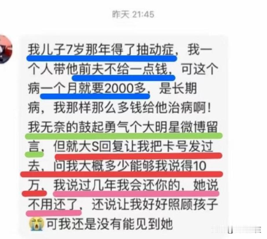 大S曾私下帮助白血病患儿,给对方转账30万? 最近几天,突然有几张关于大S帮助病