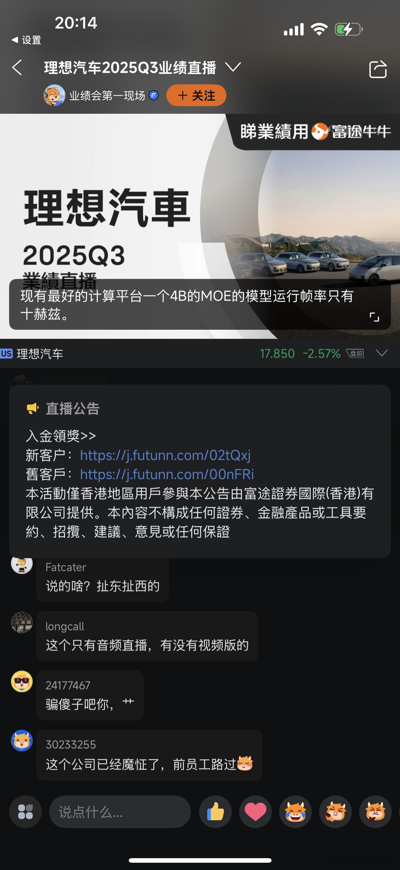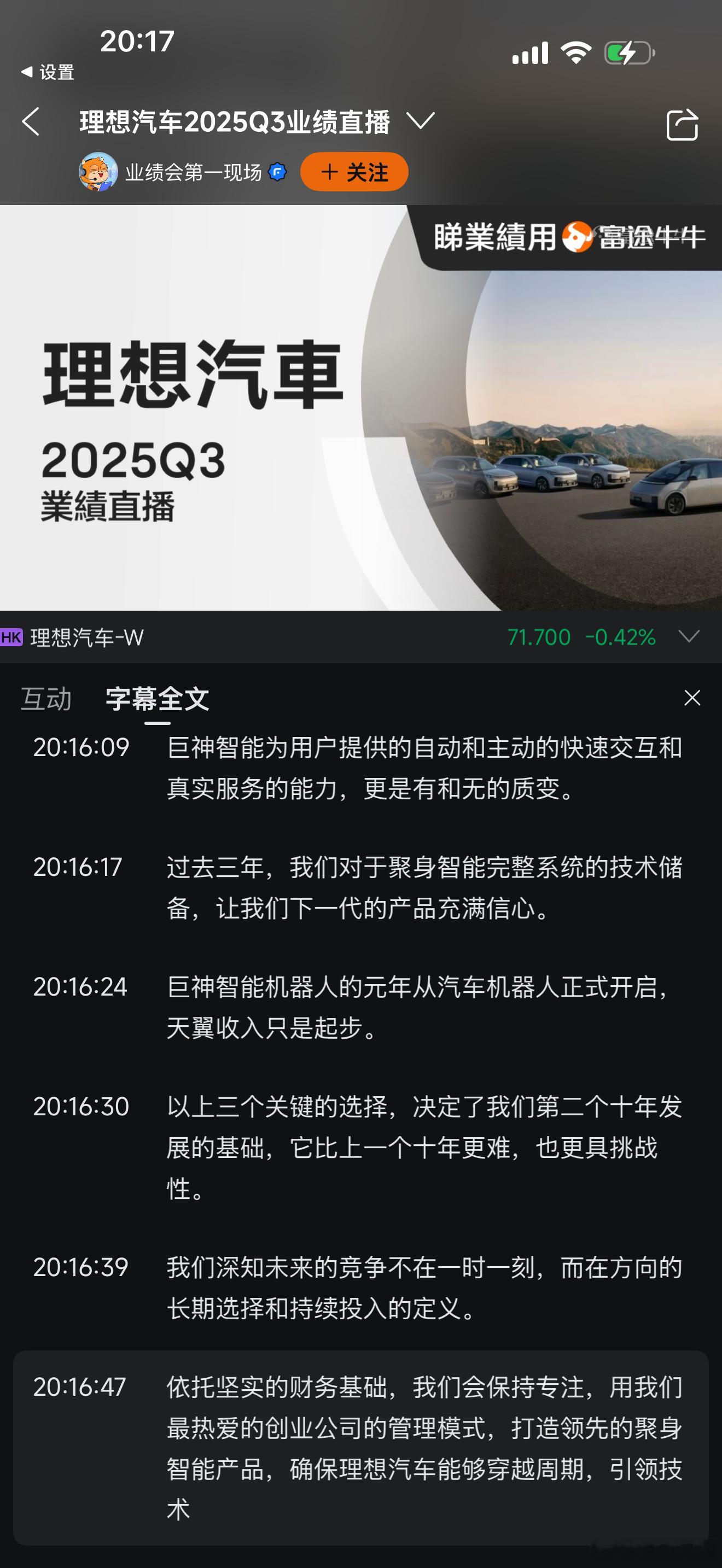 听听理想汽车财报电话会,文字是富途牛牛机器翻译的并不准确,大家需要加上自己的人肉智能去理解,我不知道这会是不是还未进入问答环节。电动兄弟增程兄弟理想汽车