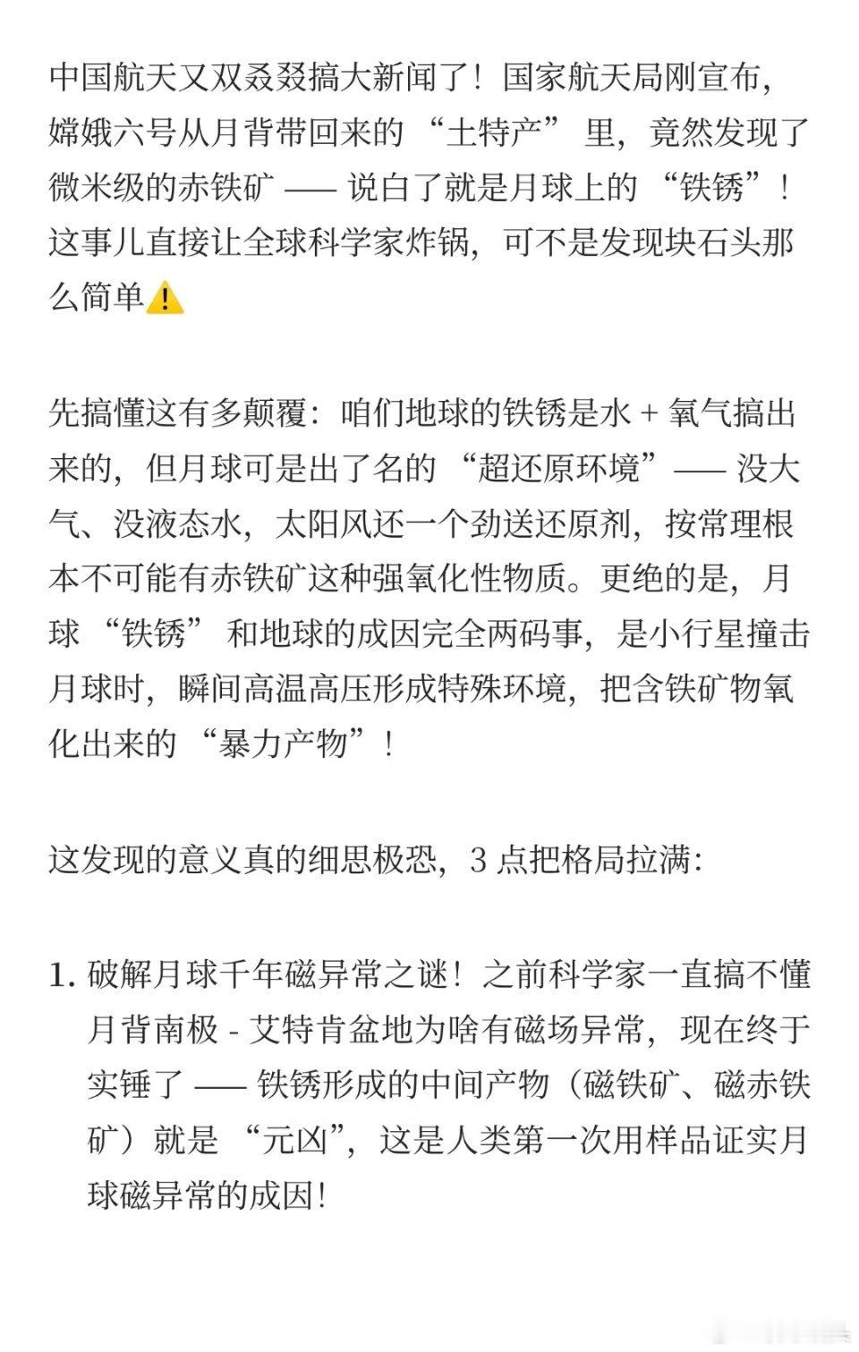 人类首次发现月球也会生锈原来月球也是会生锈的。不过这种生锈是在撞击的高温高压下产生的,不是我们地球上日常的氧化反应。