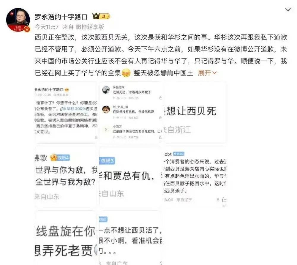 录音成终极悬念!华杉没道歉罗永浩 华杉 华杉拒不公开道歉,网友猜录音里藏着他煽动西贝硬杠舆论的内幕,或是天价咨询费的猫腻。罗永浩怒怼华与华创始人华与华创始人称西贝被算计 老罗发飙逼宫却未亮底牌,罗永浩发飙算拱火吗 是等华杉服软还是另有打算?罗永浩 录音罗永浩