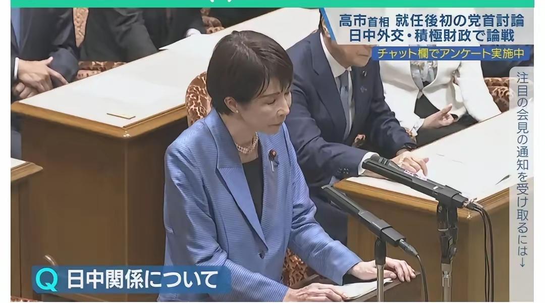 高市早苗最新发言,坚决拒绝撤回言论,愿意继续推进中日关系 11月26号,日本的国会举行了高市早苗内阁成立以来的首次高层辩论。在这次会议中高市早苗再次阐述了目前的中日关系以及自己之前的涉台言论。 整体上来看,这位日本首相仍然拒绝撤回自己的言论,并再次强调自己当时提到的生存危机是根据相应的情况综合分析之后得出来的。而且日本的立场与自己之前的回答一致,仍然不变。日本也愿意与中国进行持续的对话,并始终秉承开放的态度,自己也愿意把这件事情当成自己的责任。 从高市早苗的这番言论来看,对方根本没有任何撤回言论和想要道歉的意思。仍然固执己见地维持自己之前的立场和一些发言。由此可见,日本这个极右派的首相应该是不撞南墙,不会回头了。 当前我国对日本已经采取多管齐下的反制方针,日本很多方面都已经感受到了明显的外部压力。但是在这种情况下,高市早苗内阁的支持率仍然高达69.9%。从这一统计数据来看,似乎就能够明白这个日本的女首相为什么如此的固执了!在高市早苗开来,自己顺应的其实是日本的民心,秉承的是极右派一贯以来的立场,也就是说,这个女人坚定的认为自己根本就没有做错。 按照高市早苗的这种言论和态度,可以预见的是,接下来我国必然会继续加大各项反制和外部压力,日本这个岛国必然会因为高市早苗得不到言论而付出沉重的代价。