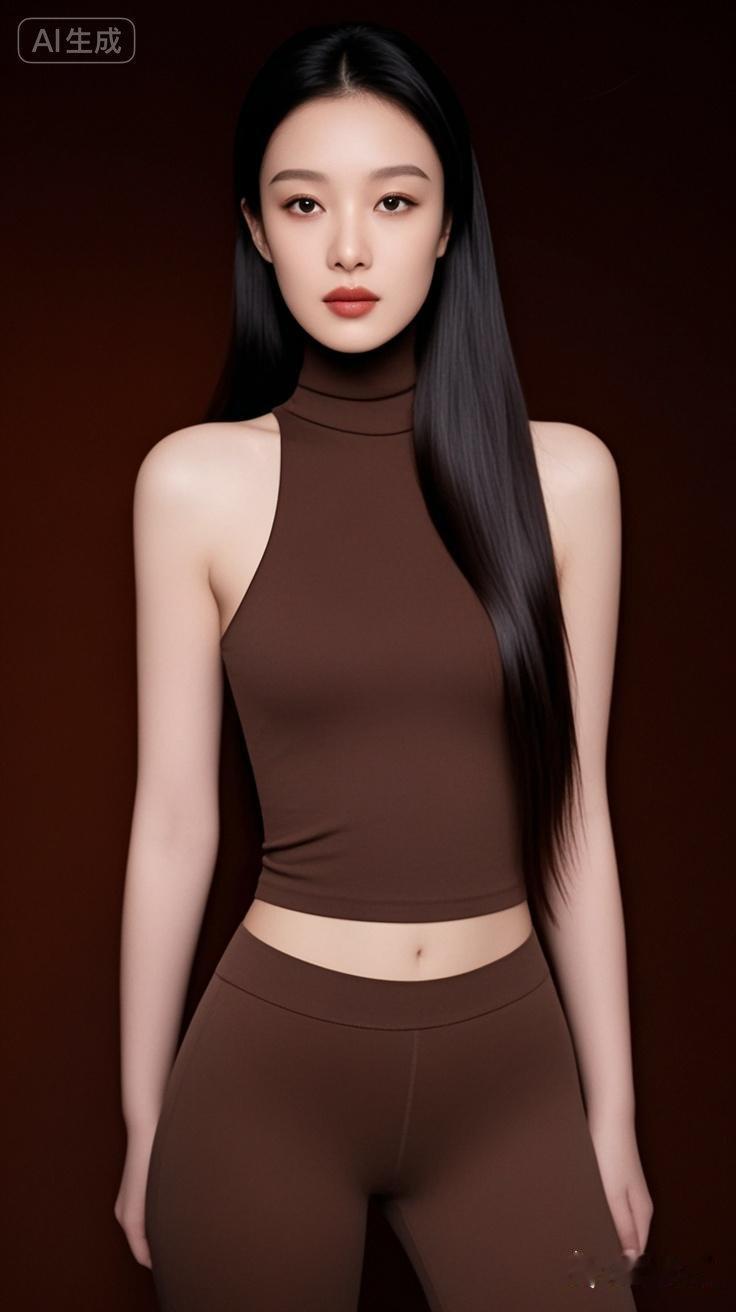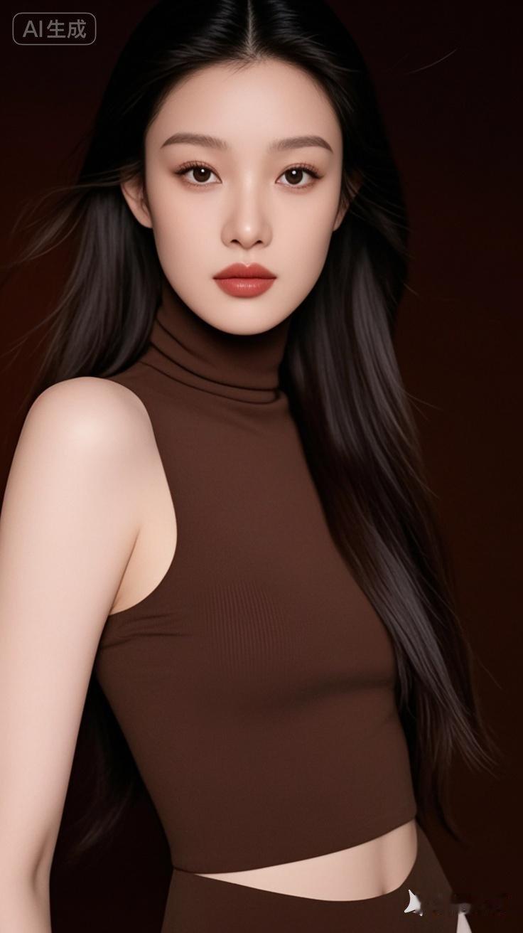 优雅气质,深棕色高领紧身衣,尽显时尚魅力!