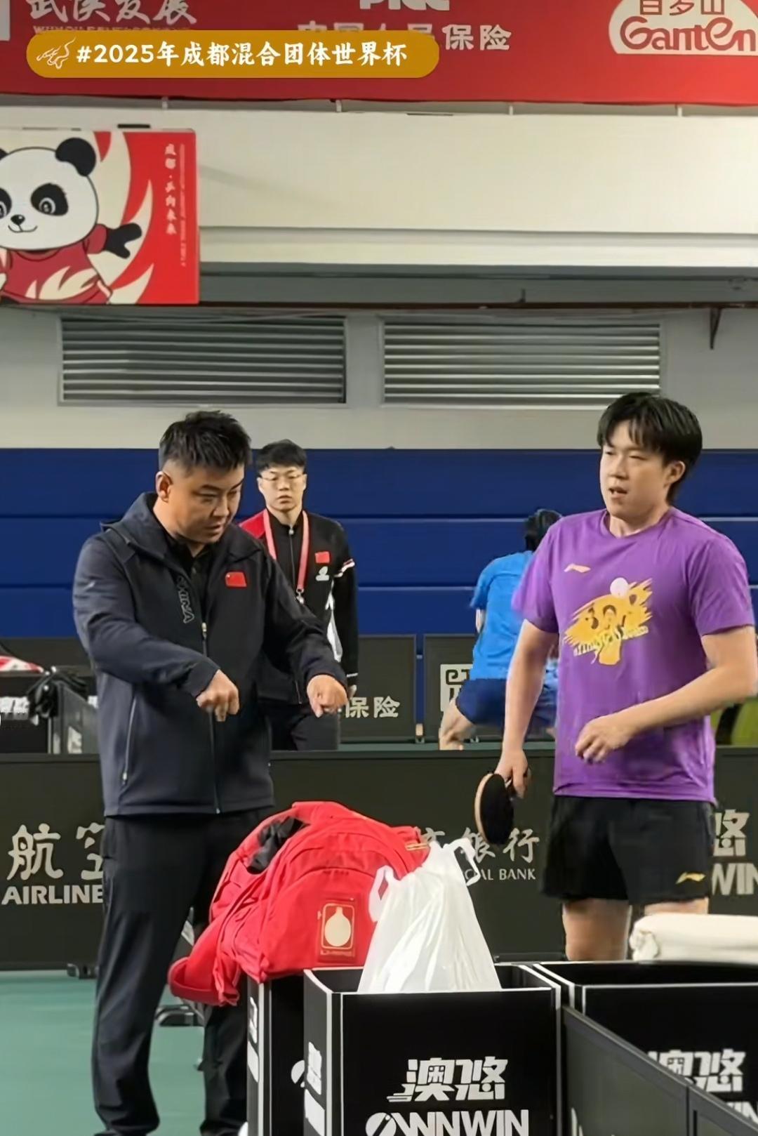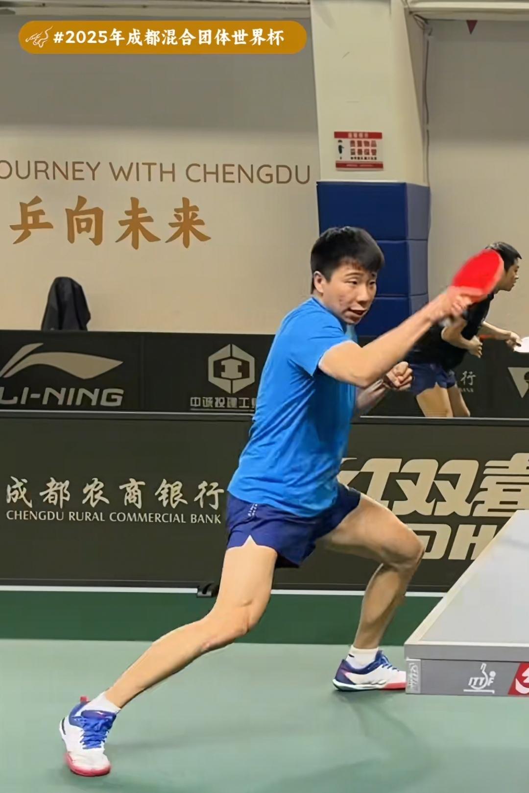 必须为国乒团队这群年轻人点赞,虽说混合团体世界杯,国乒有绝对实力夺冠,但是这群年轻人抵达成都后就开始上训了,真的是时刻不敢松懈。 国乒团队今天一早8:30分已经抵达北京机场,即使国内航班也是起了个大早。 抵达成都后,大家就开始投入训练,八名主力队员一起上阵训练,久未露面的马琳也出现在国乒女队的训练场地,国乒男队主教练王皓在和王楚钦比划着交流。 今年首次参加混合团体世界杯的徐瑛彬也和大家在一起训练。 莎莎和楚钦出发成都前都修剪了头发,莎莎依然是超短的发型,看起来总是又萌又乖的样子。