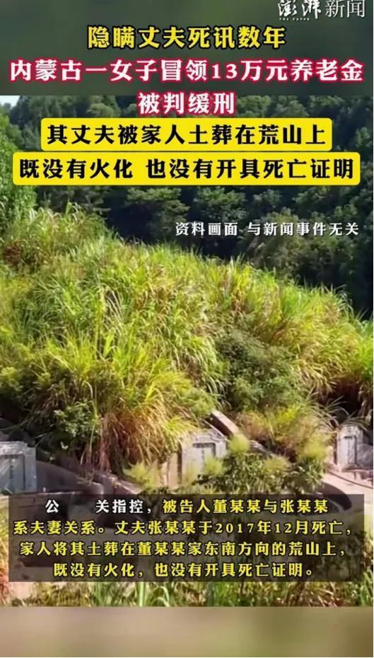 “好一个瞒天过海!”内蒙古,一女子丈夫去世后,她既没火化,也没有开死亡证明,直接把丈夫埋在家附近的荒山上,然后4年悄悄领了亡夫133933.96元养老金,没想到东窗事发,结局让她彻底傻眼。网友:不是每年要养老认证吗? 你们是不是也跟网友一样疑惑?每年的养老认证,她到底怎么蒙混过关的?原来这女子钻了“线下认证”的空子!早些年部分地区对高龄、行动不便老人,支持亲属代为认证,她就拿着丈夫的身份证、社保卡,谎称丈夫卧病在床没法亲自到场,工作人员没实地核查,就给过了。 这操作真是胆大包天!丈夫去世本是伤心事,她却满脑子想占便宜,连火化和死亡证明都省了,偷偷埋在荒山——既违反了殡葬管理规定,又涉嫌诈骗,简直是一步错、步步错! 4年时间,她按月领取养老金,累计拿了13万多,以为神不知鬼不觉。可她忘了,养老金发放是联网的,民政部门的死亡登记、公安的户籍注销,迟早会和社保系统比对上,大数据根本藏不住猫腻! 东窗事发的导火索,是村里的一次人口普查!工作人员核对户籍时,发现她丈夫多年没露面,追问之下她支支吾吾,破绽百出,工作人员立刻上报,警方一查,果然查出了惊天秘密。 结局有多惨?她不仅要全额退还133933.96元养老金,还要缴纳罚款!更严重的是,她的行为已经构成“诈骗罪”,根据《刑法》规定,诈骗公私财物数额较大,可处三年以下有期徒刑、拘役或者管制,并处或者单处罚金。 网友说得好:“贪小便宜吃大亏!”这13万看似到手了,可最后不仅要吐出来,还得赔上自由和名声,值得吗?而且她侵占的养老金,来自千千万万参保人的缴费,是国家给老年人的“养老钱”,这么做无疑是在挖公共福利的墙角。 可能有人会说“她是不是生活困难才这么做?”但再难也不能违法!生活困难可以申请低保、临时救助,国家有完善的帮扶政策,可她偏偏选了最蠢的路,把自己推向了深渊。 现在的养老认证早就升级了!人脸识别、大数据比对成了标配,就算想代领,系统也会要求实时刷脸,还会和医院的就诊记录、公安的户籍信息联动,想靠“瞒天过海”骗养老金,根本行不通! 这事儿也给所有人提了个醒:养老金是“保命钱”,一分一厘都不能贪!不管是代领还是瞒报,只要触碰法律红线,迟早会被发现。而且殡葬改革早就明确,遗体必须按规定火化或安葬,私自埋在荒山,本身就是违法行为。 反观那些老老实实参保、依法办事的人,才能安安稳稳领养老金。做人做事,还是得守规矩、走正道,靠歪门邪道得来的钱,终究留不住,还得付出惨痛代价! 这女子的经历,就是活生生的反面教材——莫伸手,伸手必被捉!法律面前没有侥幸,任何企图钻空子、占便宜的行为,最终都会自食恶果。 各位读者你们怎么看?欢迎在评论区讨论。
