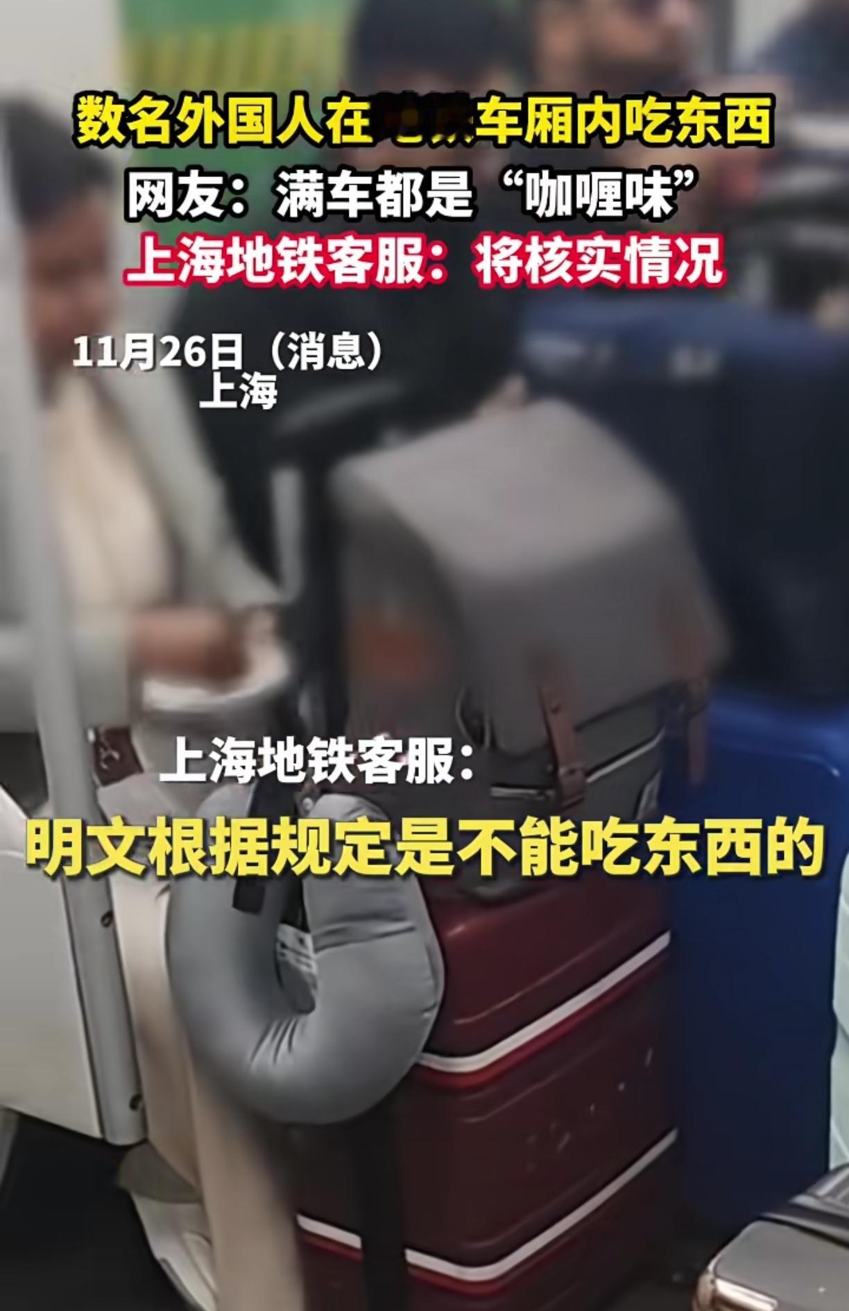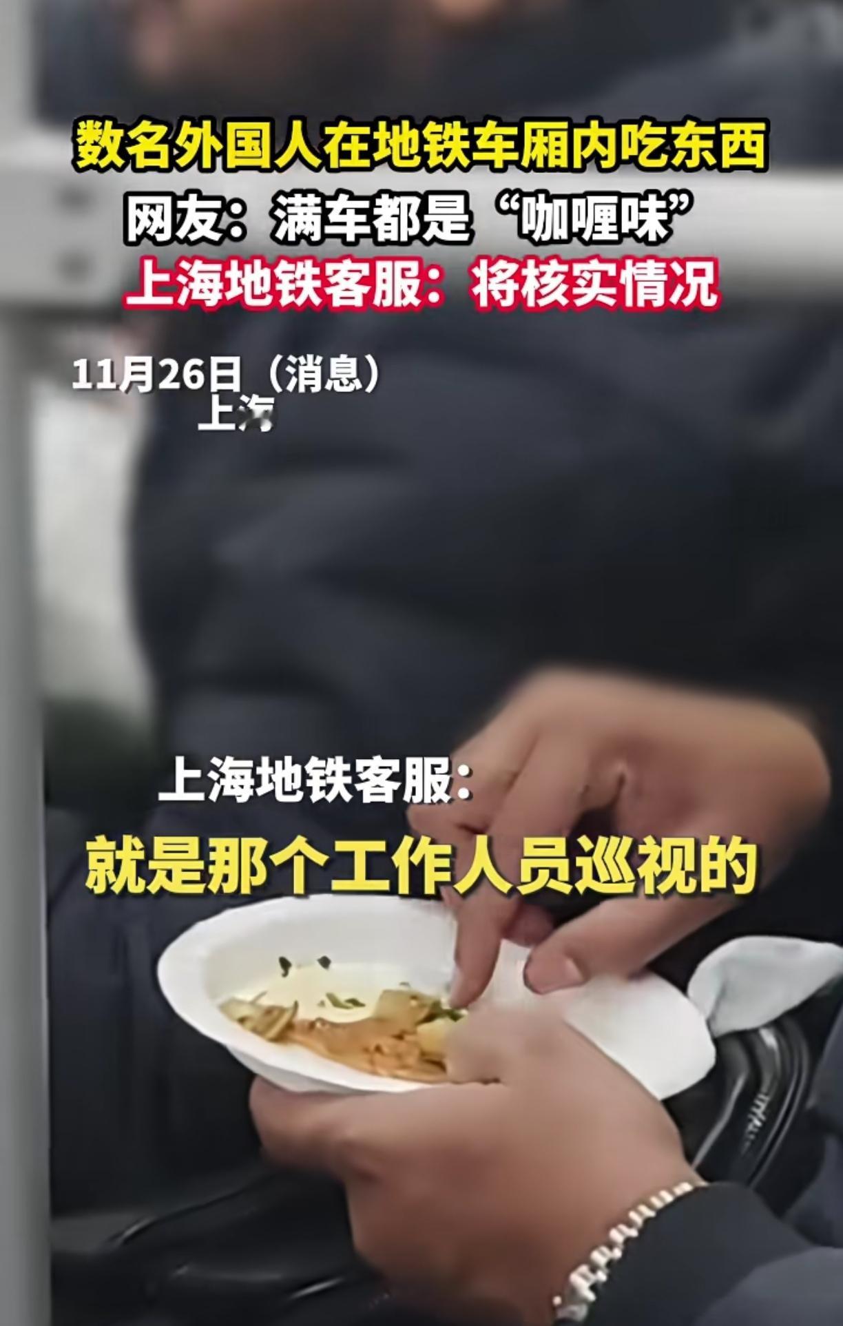 上海地铁二号线出现的这一幕———印度人组团车厢内表演吃手抓饭,这居然是真的,不敢置信! 刷到有博主爆料的时候,我当时还以为是假的呢,这明文规定不能干的事情,怎么就这么明目张胆的做了,是不是图片拍的不是上海? 结果人上海地铁客服回应了“将核实情况,事件已受理”,但目前地铁里还没有巡逻人员,难道车厢里的监控还能看到外国人就自动关闭吗? 真的不能理解,自己人不能干的事情,外国人干了连个处罚都没有,是国人的话罚单早就送过来了吧。 上海地铁还是缺钙太严重了! 难怪网友们都说“上海是一个既排外又对外特别包容的城市”,果真一点也不假!