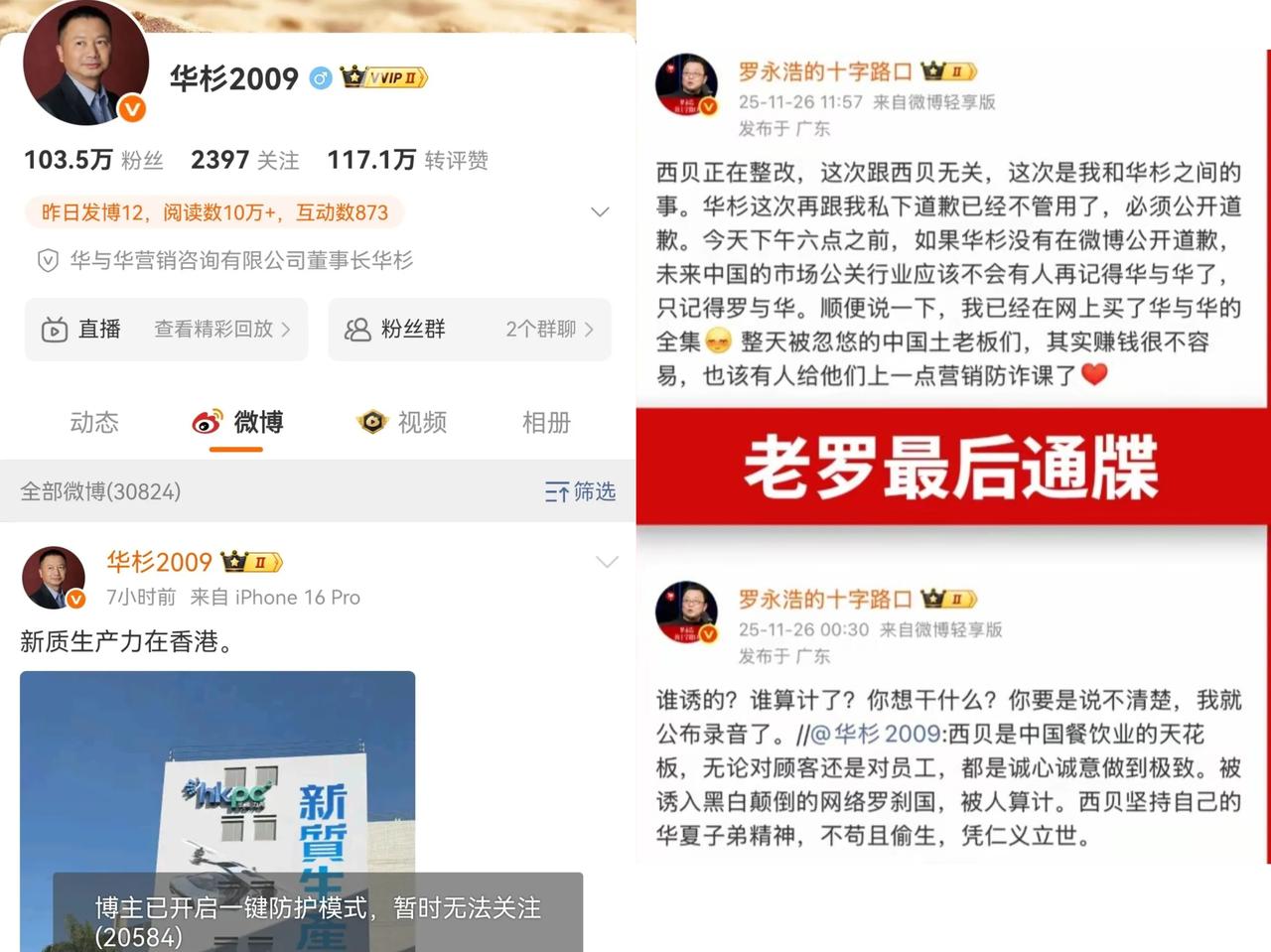 华杉开启账号保护是明智的选择。 这个时候的他是进退两难,他一旦给老罗公开道歉了,那他在公关界的地位就不保,不道歉还能赌老罗手里的录音是虚张声势。 他只有用沉默来硬刚老罗,才能给华衫寻得一线生机,要不然,今年的尾款他就别想要了。 那他为啥要在这个时候出来找老罗的茬,其实~还是跟尾款有关。 谁不知道西贝就是华衫在公关界的典型案例,靠着西贝的成功,华衫也积累不少的名声,要是在西贝这件事上,他不能妥善解决,那以往冲着西贝签下的单子,还能不能续约都是一回事。 只是华衫在西贝的公关上,始终走错一步,本来西贝的口碑都可以翻身了,不用他发话力挺,口碑也能好起来,但华衫偏偏要自作聪明,以为用网络罗刹国就不知道是在说谁。 要说玩网络梗,能赢过老罗的屈指可数,这不是在关公面前舞大刀了。