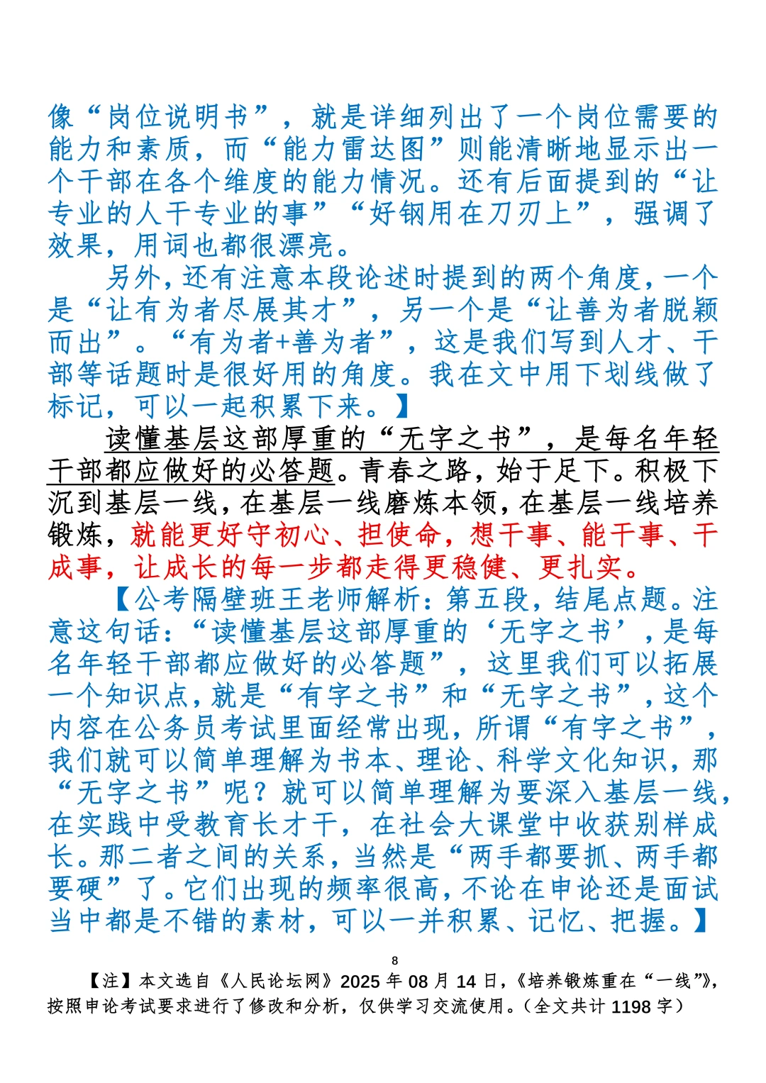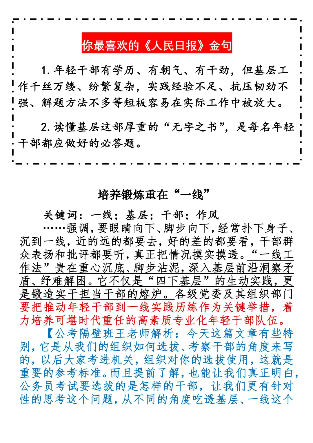 如何抄写:每日抄写文章发在“公考隔壁班王老师”账号,红色字是重点句和结构句,黑色字是正文,蓝色字是解析,大家抄写时不必抄蓝色字。建议先通读全文,做到心中有数再开始抄写,效果会更好。 关于文章:抄写文章来源于人民日报,但每篇文章我都根据申论考试要求进行了修改:一是重写或修改开头、结尾;二是统一段首句句式结构;三是调整段落字数,使文章结构更均衡;四是简化复杂长难句,使之更具可模仿性。每篇文章无论修改多少,都是基于申论考试要求,毫无对人民日报文章品评之意。(此处致敬人民日报)
