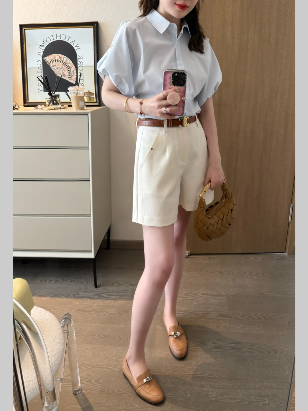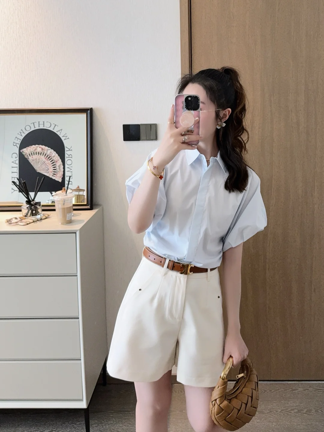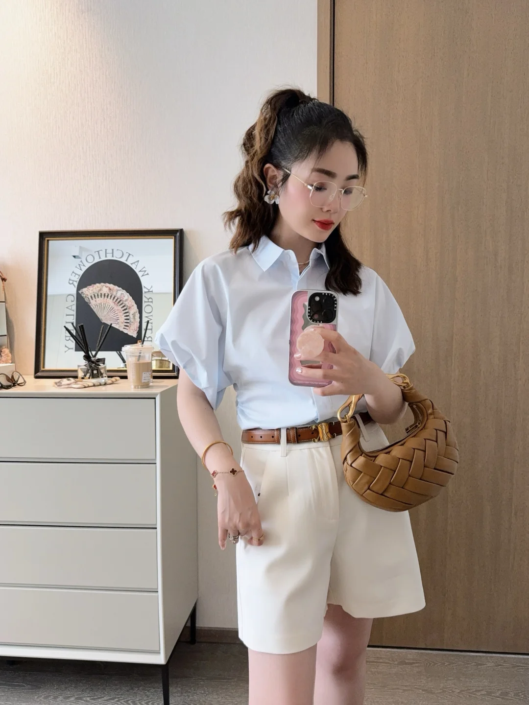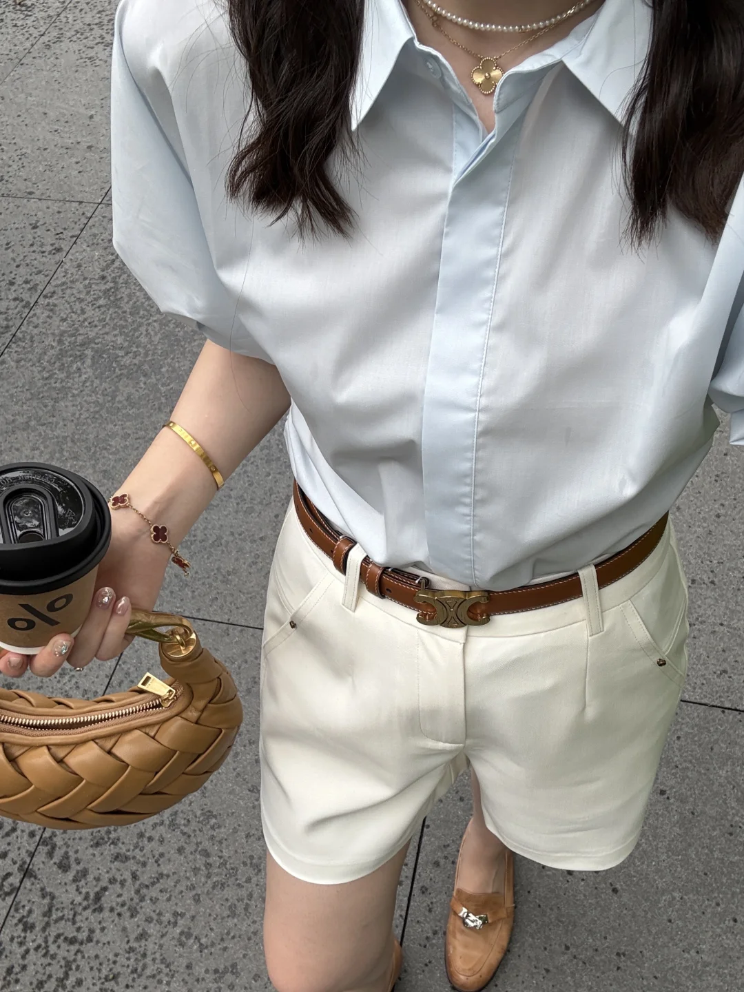 一周都在断断续续的下雨~~🌧️ 虽然不喜欢下雨、但是二十几度真的超级舒服~~ 夏天喜欢的低饱和色系,拿出了去年爱不释手的编织包、今年看还是很爱~~ 一套很适合长期主义的穿搭,感觉很不戳呐~~~