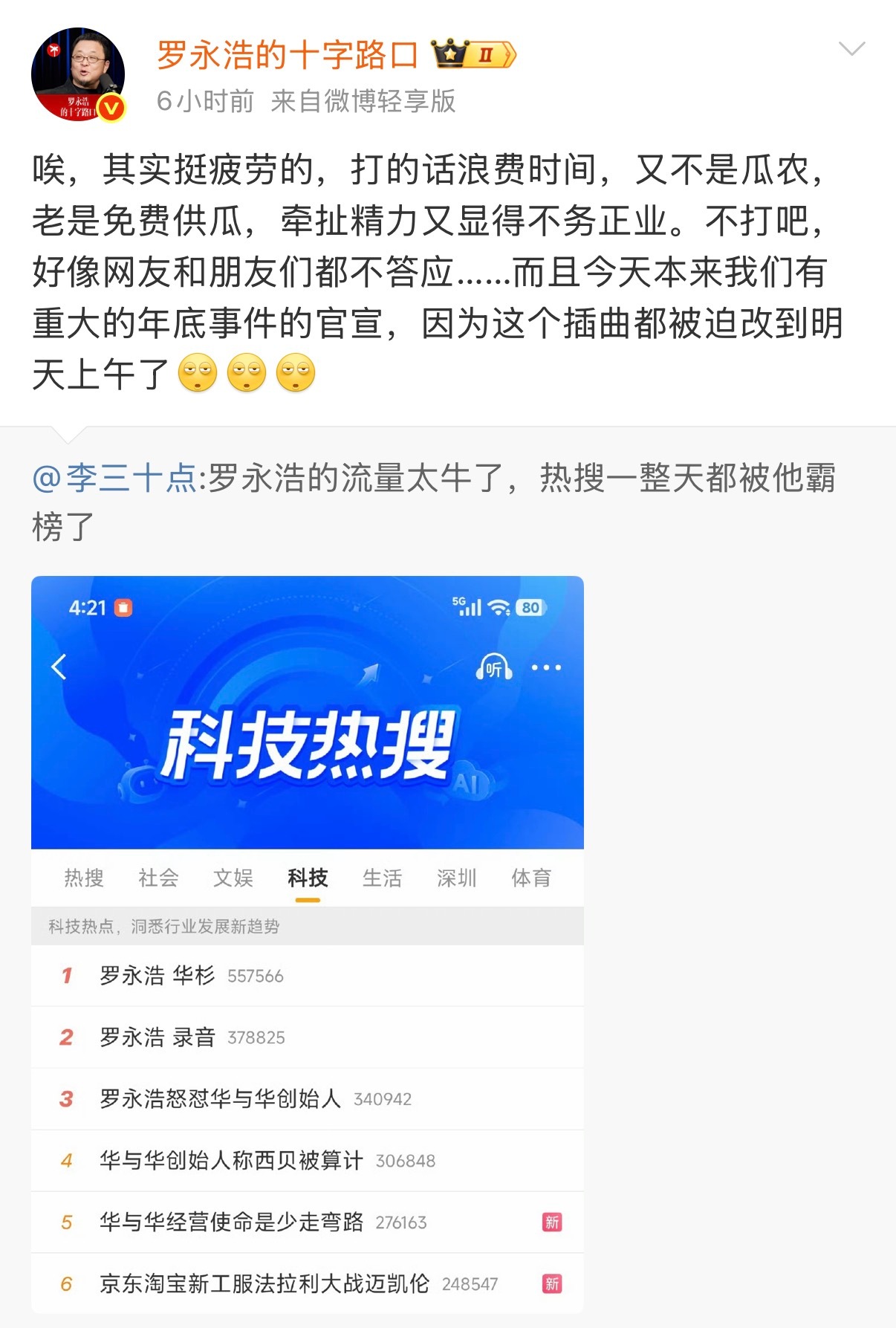 罗永浩回应与华与华争执罗永浩最新回应来了,与华与华之间的争执,打的话浪费时间,不打网友们都不答应!总的来说,今天华与华没有道歉,罗永浩也没有放录音,所以是罗永浩怕了还是华杉怂了?