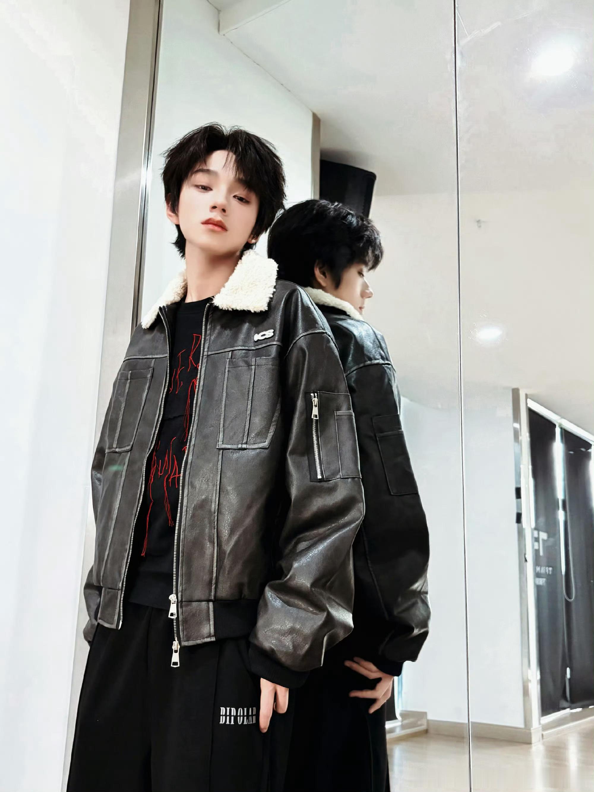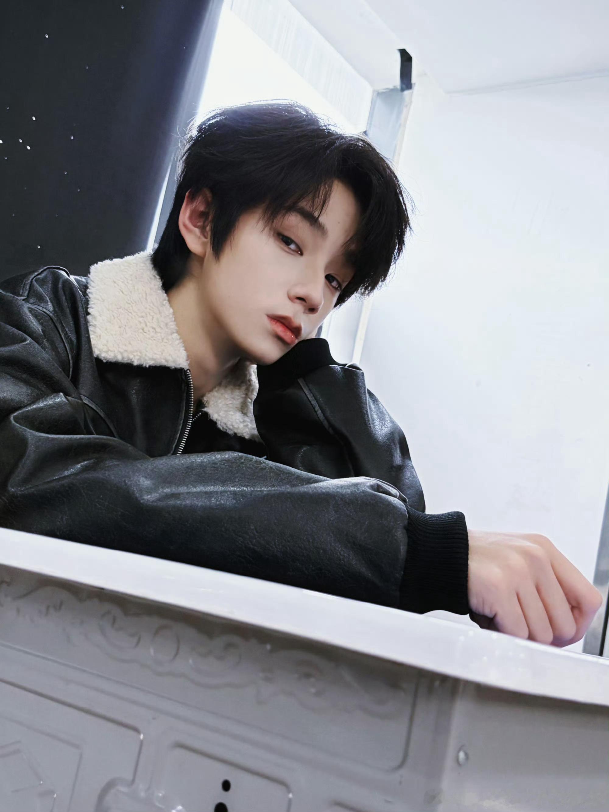 王橹杰皮衣眼神杀王橹杰新鲜照片放送皮衣look+超绝眼神杀每一张都超有senc