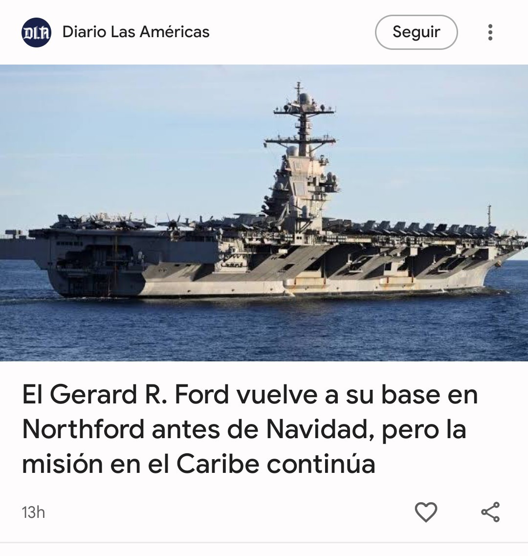 美国“杰拉尔德·R·福特”号航空母舰正驶向大西洋西部美国南方司令部承认,该航母为驶离加勒比海前往诺福克海军基地玻利瓦尔英雄之地委内瑞拉烽火问鼎计划