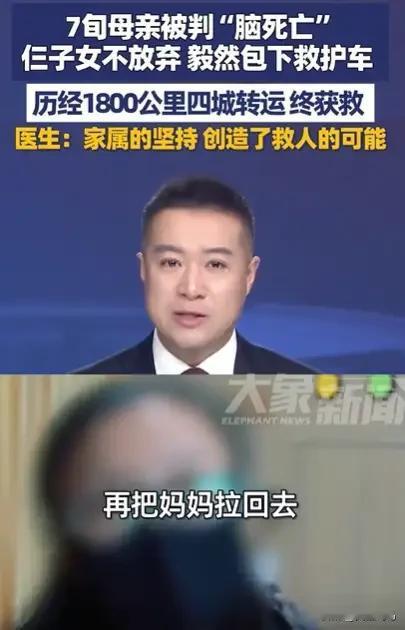 泪目!甘肃一7旬老人被判“脑死亡”,可子女不信邪,花4万包了辆救护车,跨越1800km,将老人送到西安大医院,到医院时老人已出现脑疝icon,女儿当场表态:我不想这样再把妈妈拉回去,请你再试试。最终,老人恢复自主意识,医生说:是家属的坚持,为我们创造救人的可能。 泪目!这是一段令人心碎又感动至深的故事,也是一场关于亲情与信念的生死较量。 在这个快节奏的时代,我们习惯了快餐式的生活,似乎也渐渐淡忘了那份“信念”的力量。而就在甘肃的那位七旬老人身上,发生了一场关于“希望”的奇迹。医生宣布她“脑死亡”时,或许很多人会觉得:这已经是终点,是命运的安排。然而,她的女儿却用行动告诉我们:在亲情面前,没有所谓的“终点”。 花了4万,跨越1800公里,奔波在风雨中,只为那一线“奇迹”的希望。或许有人会问:“这是盲目的执着吗?”但细细想来,这正是人性中最温暖、最坚韧的一面——那份不愿放弃的爱。她们的坚持,打破了医学的界限,也唤醒了我们对生命的尊重与敬畏。 当老人终于在医院苏醒,医生感慨:是家属的坚持,为我们创造了救人的可能。这句话,重重地敲击在每一个人的心上。生命的奇迹,往往源自那份不放弃的信念。或许,很多人都曾在绝望中迷失,但只要心中有希望,就有无限可能。 这故事告诉我们:无论面对多么艰难的境地,只要心怀希望,就没有到不了的彼岸。它也提醒我们,亲情的力量远比我们想象的更为强大。也许我们每个人都能从中汲取一些力量,无论遇到什么困境,都不要轻易放弃那一线希望。 这不只是一场救援,更是一场关于生命的教育。它让我们反思:我们