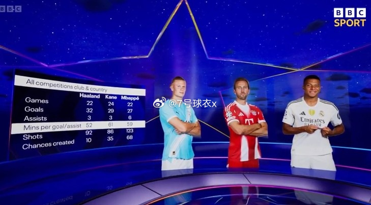 在本轮欧冠,皇马4-3击败奥林匹亚科斯,姆巴佩上演大四喜。BBC对比了姆巴佩、哈兰德、凯恩本赛季国家队+俱乐部赛事参与进球情况,具体如下:哈兰德vs凯恩vs姆巴佩比赛场次:22-24-22进球:32-29-27助攻:3-3-6平均参与进球用时:52分钟-61分钟-59分钟射门数:92-86-123创造机会:10-35-68