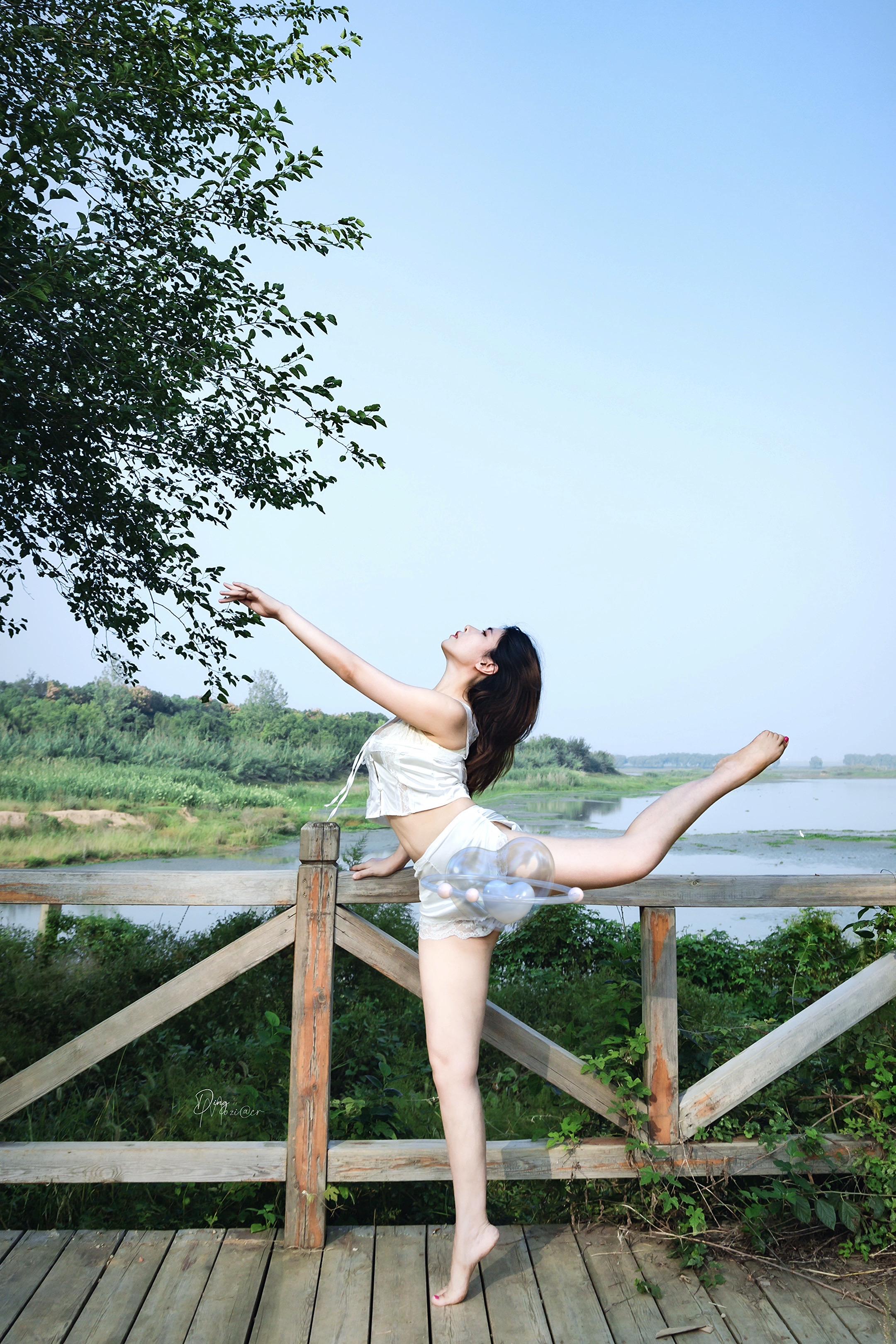 阳光透过|少女在旷野上 舞动青春。《户外氛围感写真》 阳光明媚的一天~ 在大自然的旷野中~ 舞动优美的舞姿,自由而美好~ 模特: 拍摄地点:武汉 府河湿地(观鸟台)
