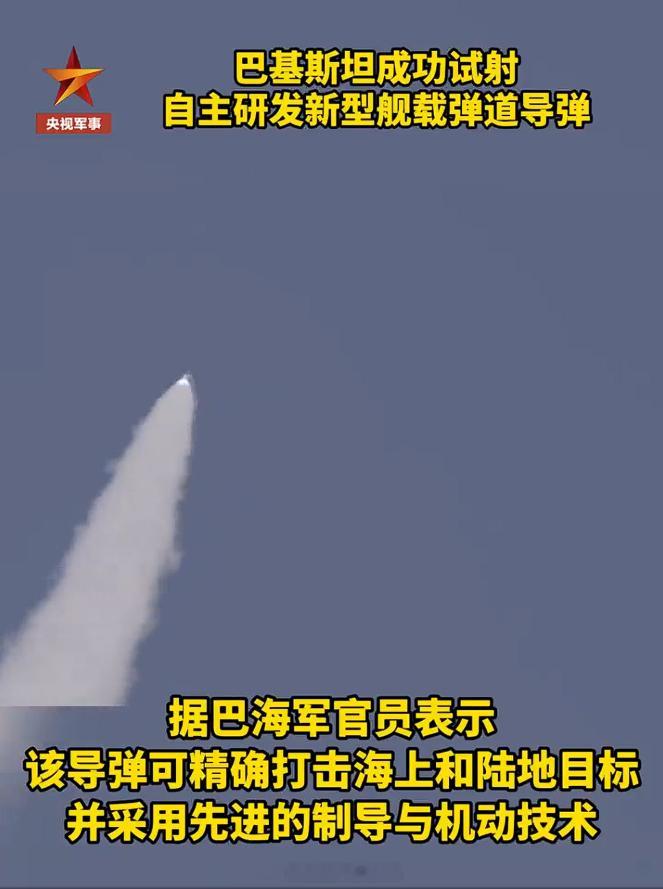 【巴基斯坦成功试射新型舰载弹道导弹】11月25日,巴基斯坦海军成功试射一枚自主研发的新型舰载反舰弹道导弹。据巴海军官员表示,该导弹可精确打击海上和陆地目标,并采用先进的制导与机动技术。(央视军事)