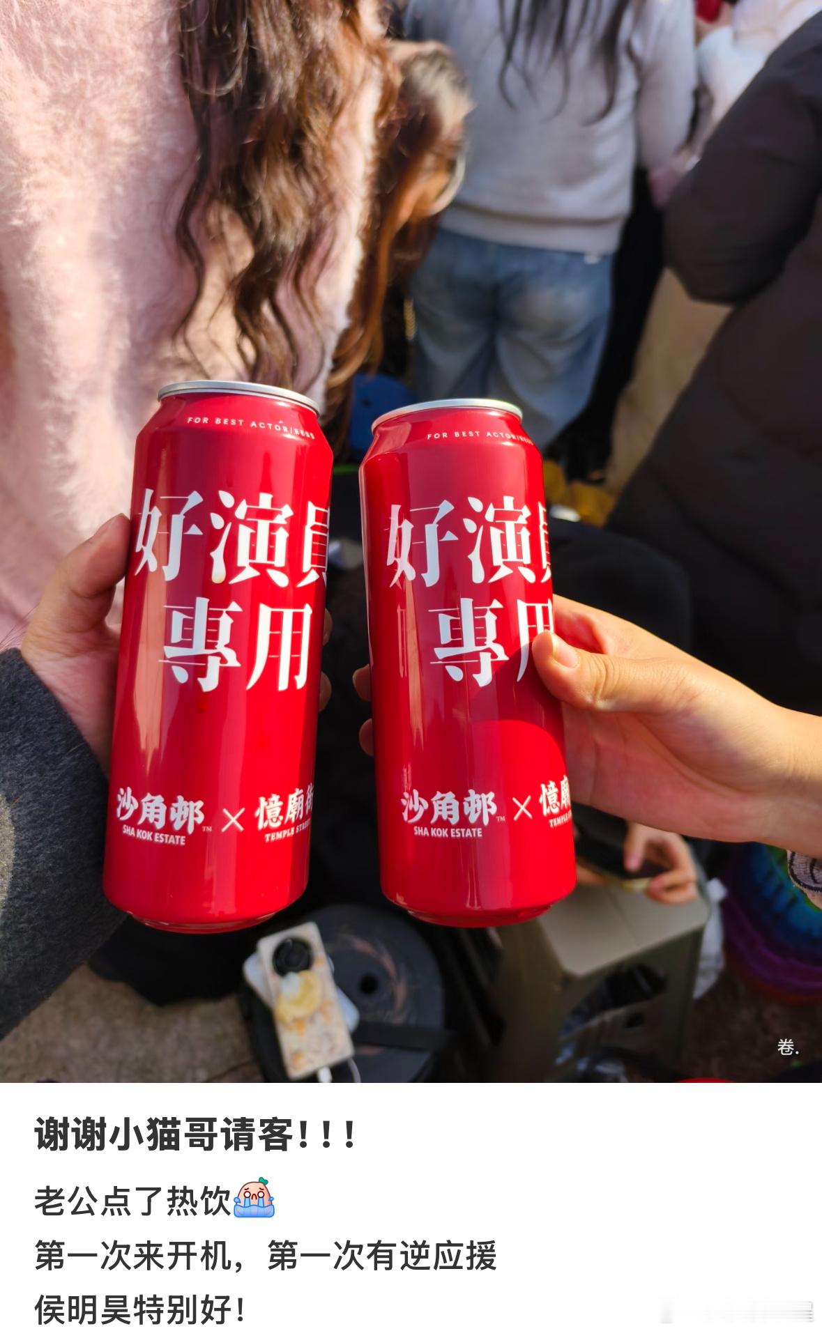 就这个给粉丝送热饮的小侯好!侯明昊碧血蝉开机照侯明昊开机请粉丝喝热饮