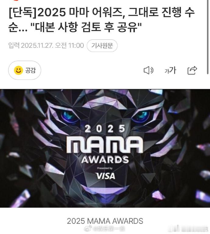 MAMA照常进行周润发杨紫琼将不出席MAMA 据韩媒,香港26日发生大型火灾,原定于28-29日在港举行的2025MAMA颁奖礼经过讨论后决定按原计划举行,主办方表示将大幅降低原本活动基调,以更庄重严肃的氛围进行,目前正在紧急修改台本。同时,杨紫琼、周润发等当地艺人已确定不出席2025MAMA。