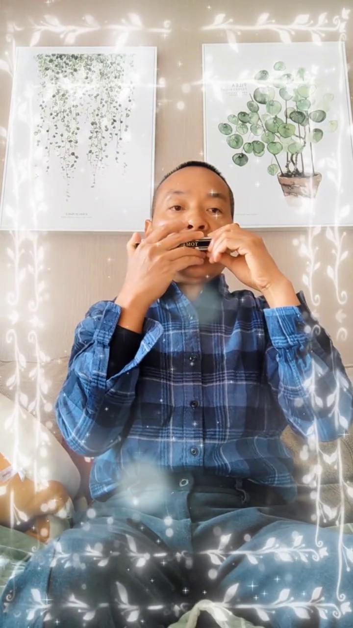 电吹管即兴一曲。清风拂面,绿意环绕,悠扬旋律随风飘荡。此刻身心沉醉,自得其乐,恰