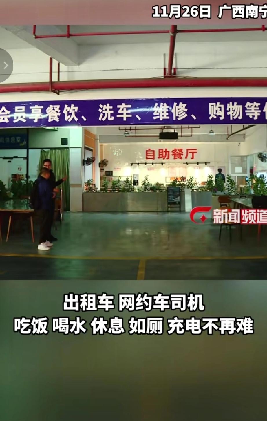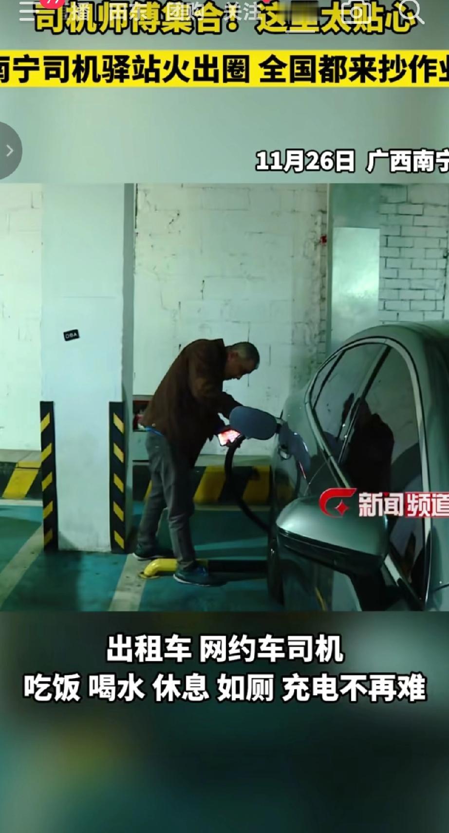 近日广西南宁司机驿站火了,司机可以在这里享受餐饮、洗车、维修、购物等优惠服务,还能解决吃饭、喝水、休息、如厕、充电等基本需求。驿站提供7×24小时基础服务,且基础服务全免费,吃饭、洗车、按摩等服务仅需9.9元。司机可以在充电的间隙一站式解决多种需求,该驿站(绿园出租汽车综合服务站)成为了行业标杆,火出圈后全国都来“抄作业”。(来源于@广西新闻频道 )