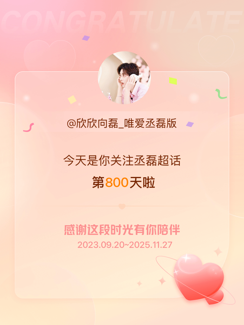 丞磊今天是我关注超话的第800天,希望能继续伴你一路前行~