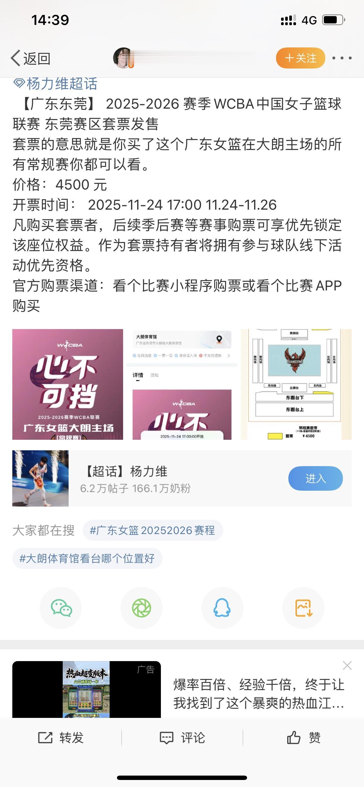 WCBA需要球星,没有球星,难发展! 原因是,球迷到WCBA各支队伍的主场所需票务费用超出我的想象! 根据目前各俱乐部官方推出的,最低的是新疆女篮主场常规赛只需要6块,就能去往现场观看比赛。(不过这是前三场的优惠活动) 浙江女篮、陕西女篮主场最低是20块,当然VIP区域肯定还是要100多的,但其实也不算贵。 山东女篮是1799块,这个是VIP套票,即所有山东女篮常规赛的主场都能看,平均算下来也是100多,还有球队的小礼物赠送。 唯独东莞女篮的属于高的,一套VIP搞下来是4500块,还能拥有她们球队当家球星的亲签盲盒,且享受季后赛优先选座权和参与她们俱乐部线下活动的资格。 那么,由此可以发现,东莞女篮为什么能做到最高?因为有杨舒予、杨力维这样子的球星,尤其是杨舒予,可以吸引很多不懂球的小姑娘来支持。 这便是球星的作用,本赛季其她球队没有办法做到像东莞女篮的这个高度。