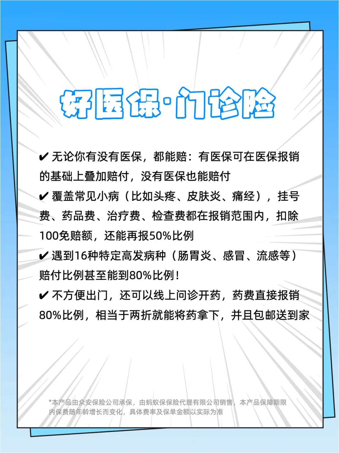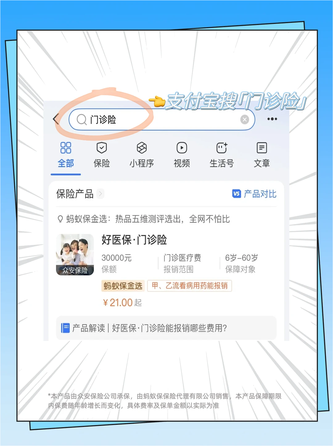 🔍可以上支付宝搜【门诊险】查看保障详情并投保