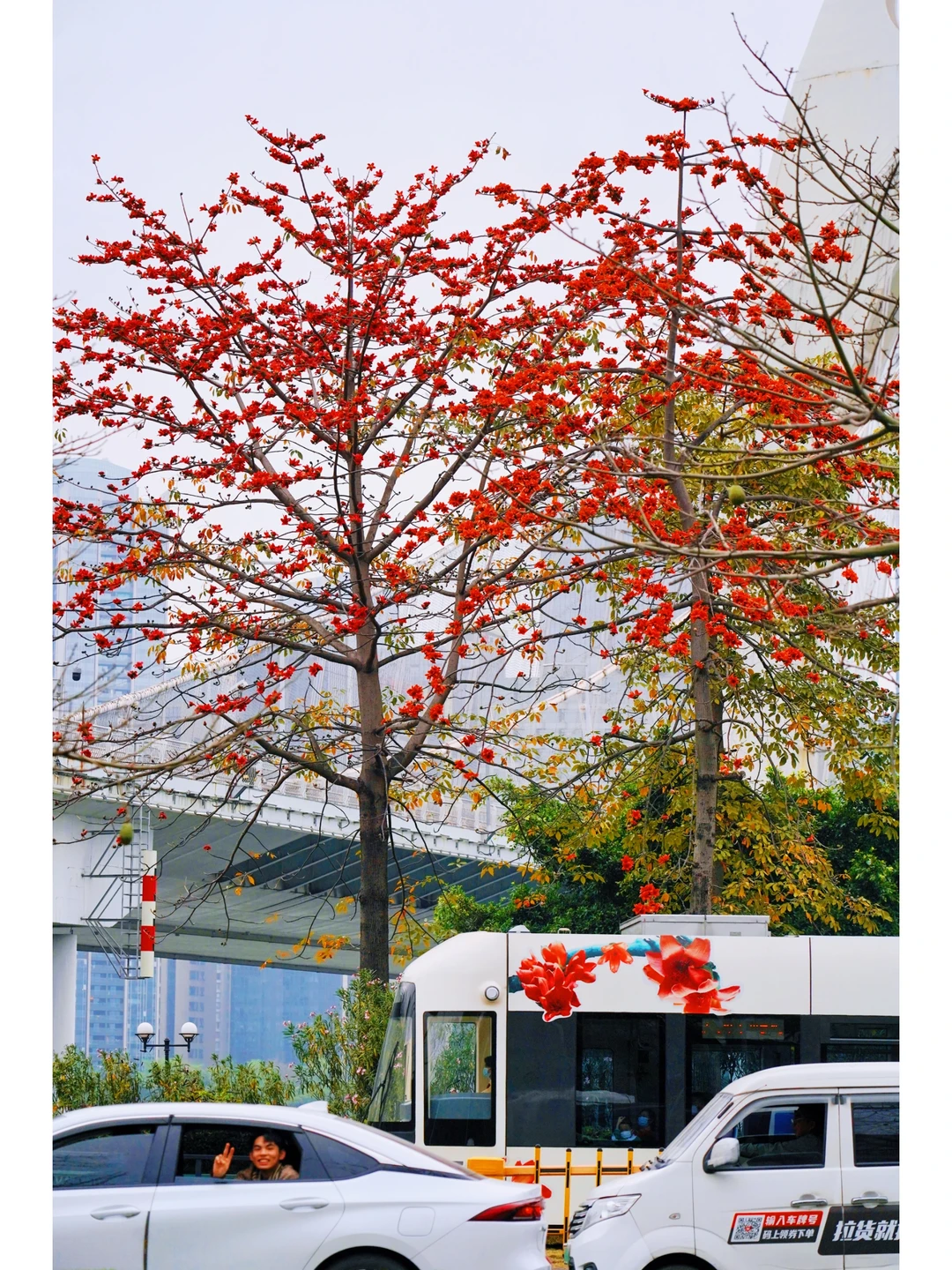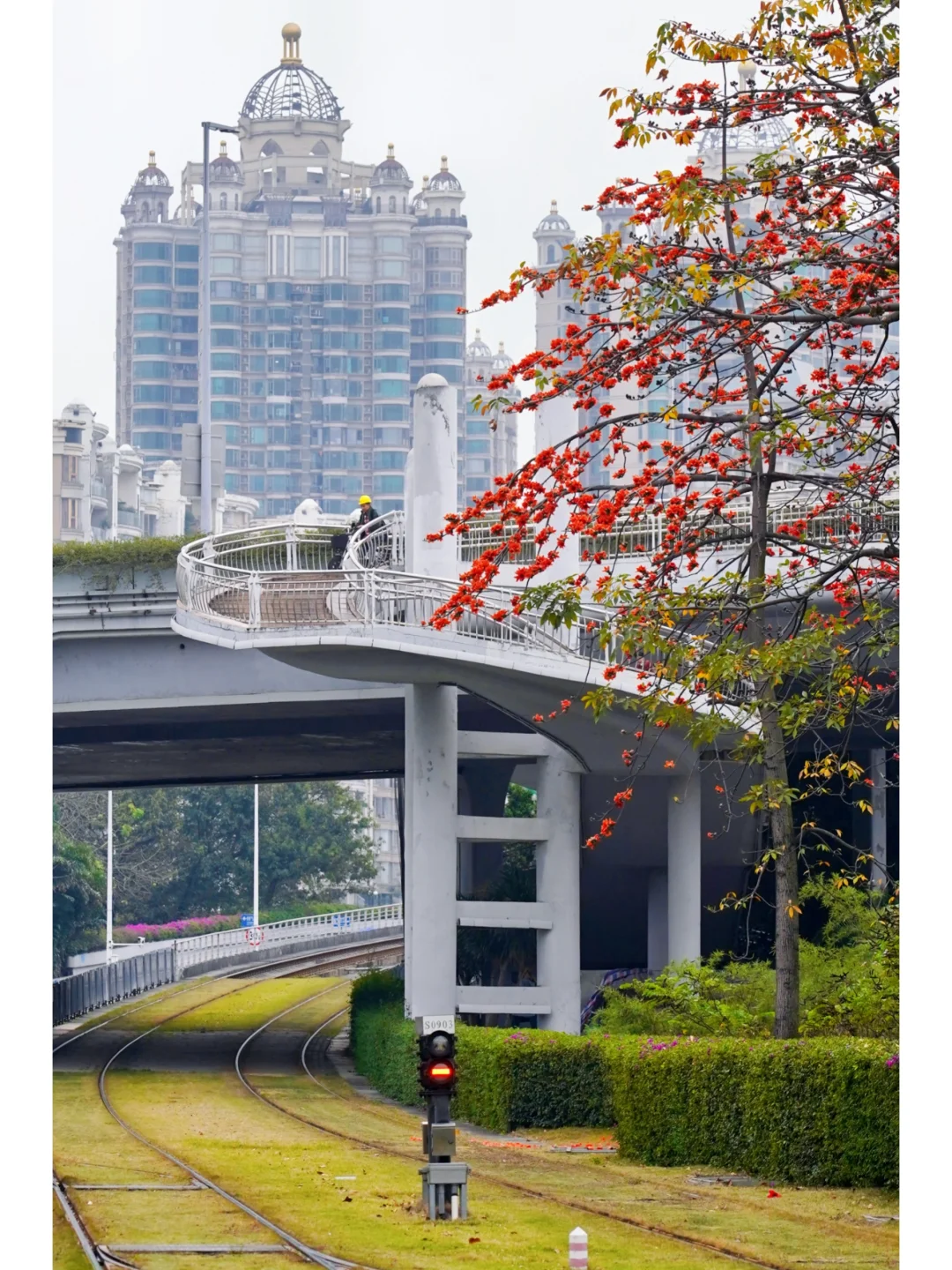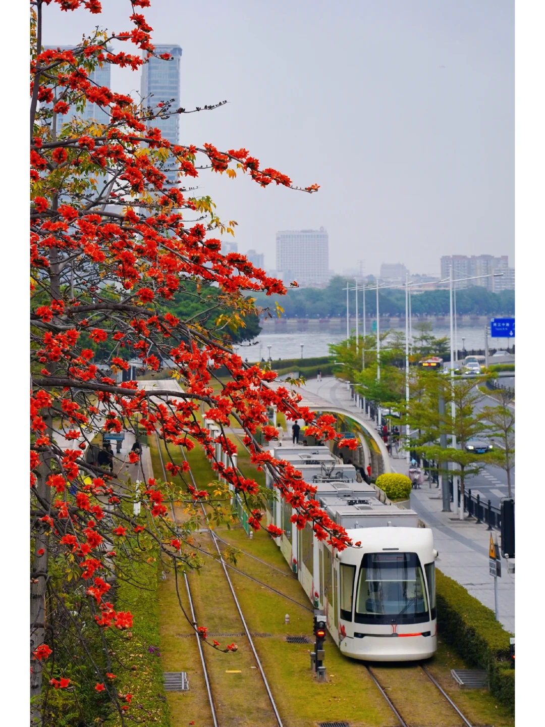 春天的影像诗 最近广州的天气不再那么灿烂 然而当木棉花热烈的绽放起来时 春天的欣欣向荣 依然感染着每一个生活在这座城市里的人 - 是不是也在苦恼 木棉树太高不好拍摄 快来这个宝藏机位吧 猎德大桥南(有轨电车站)附近的旋转楼梯 可以轻松拍到木棉电车🚃 从木棉花下驶过的照片哦 - 🚃 有轨电车约10分钟一趟 可以提前找好机位等待拍摄