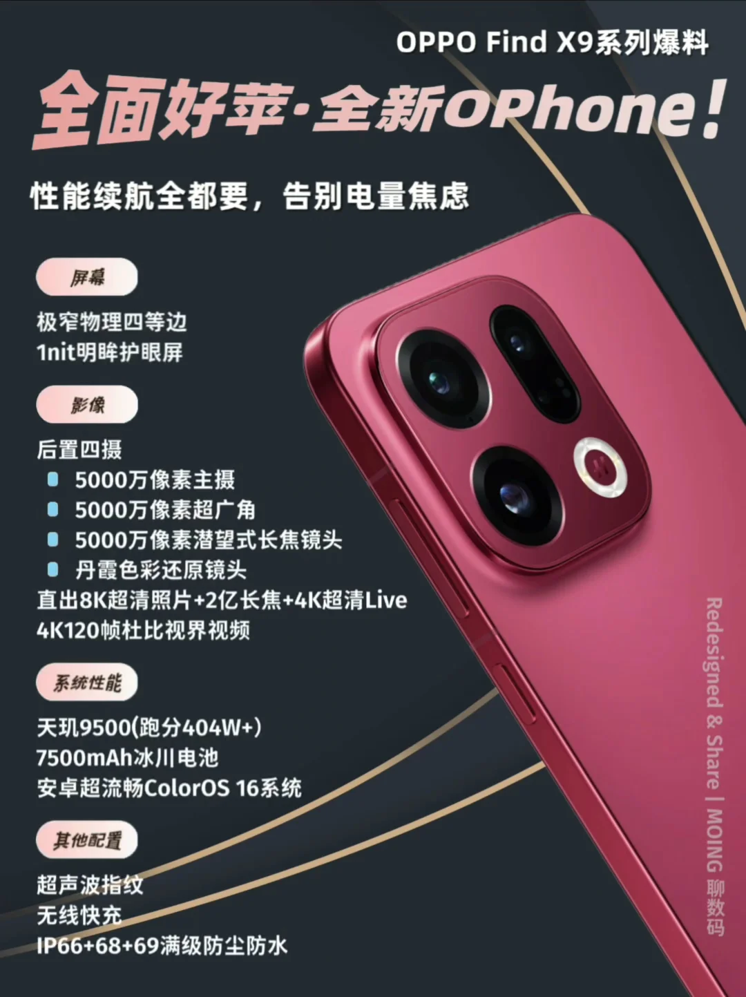 OPPO Find X9系列,尤其是标准版,这次真的是“全面好苹·蕞强标准版”的定位!从让人过目不忘的红色外观,到革命性的4K实况照片,再到无短板的性能和续航,诚意十足!