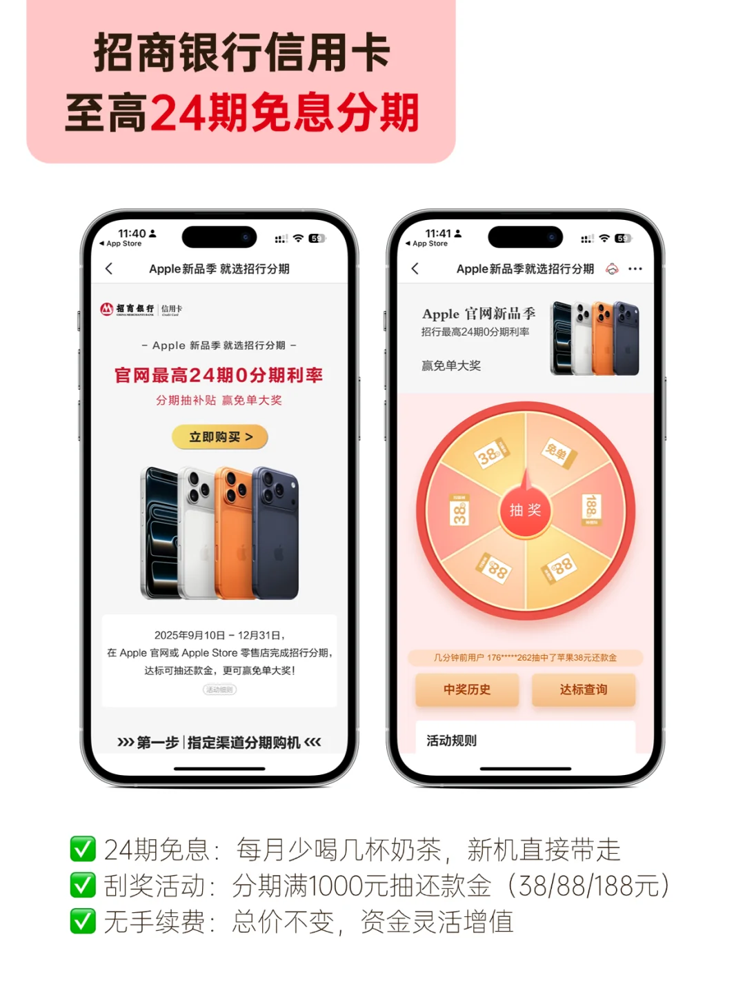 ✅ 刮奖活动:苹果官网/Apple Store分期满1000元抽还款金(38/88/188元),最高免单资格!!上掌上生活App搜“苹果”就能参加!