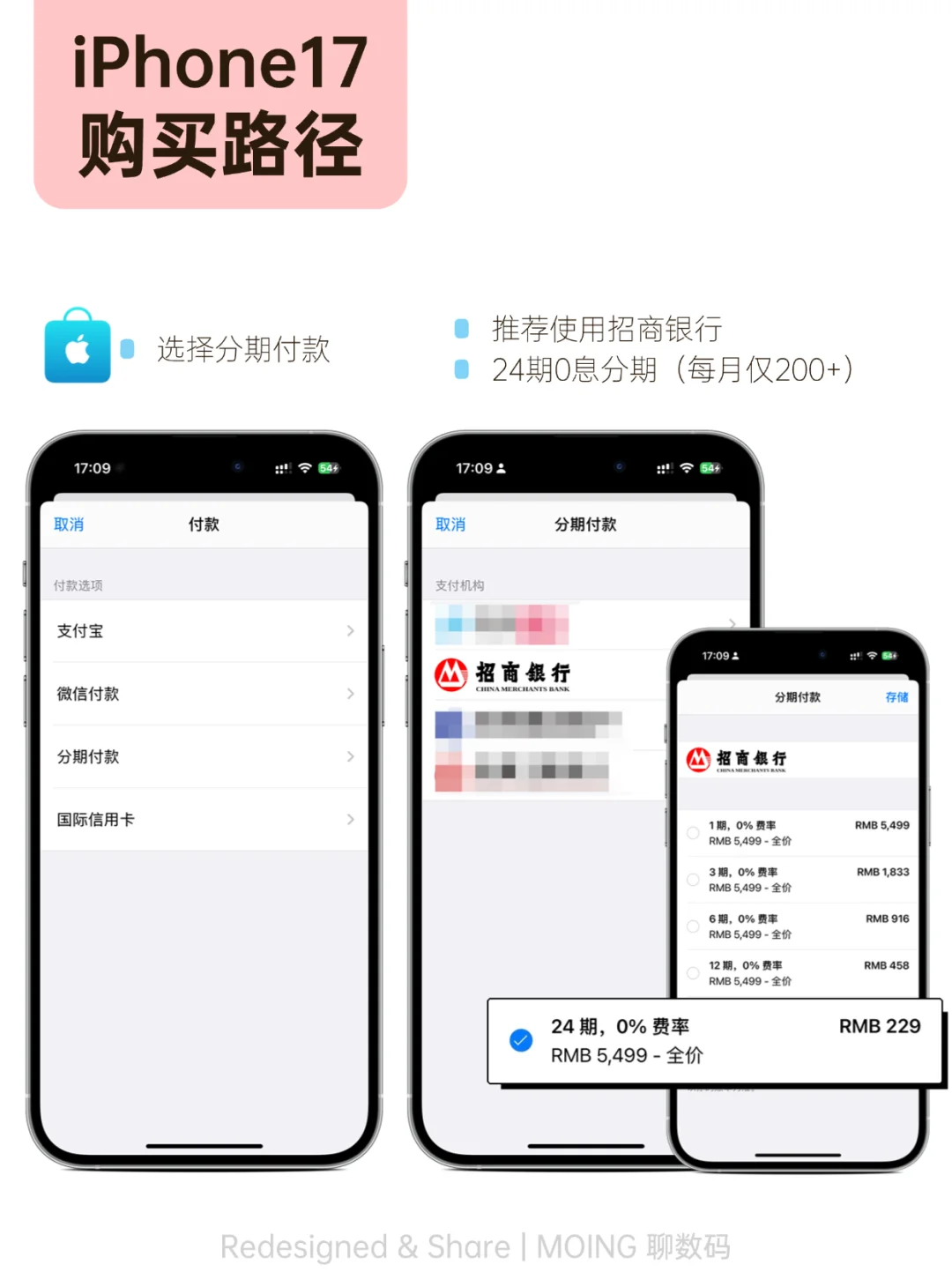 2️⃣ 付款优先选「分期付款」→「招行信用卡」