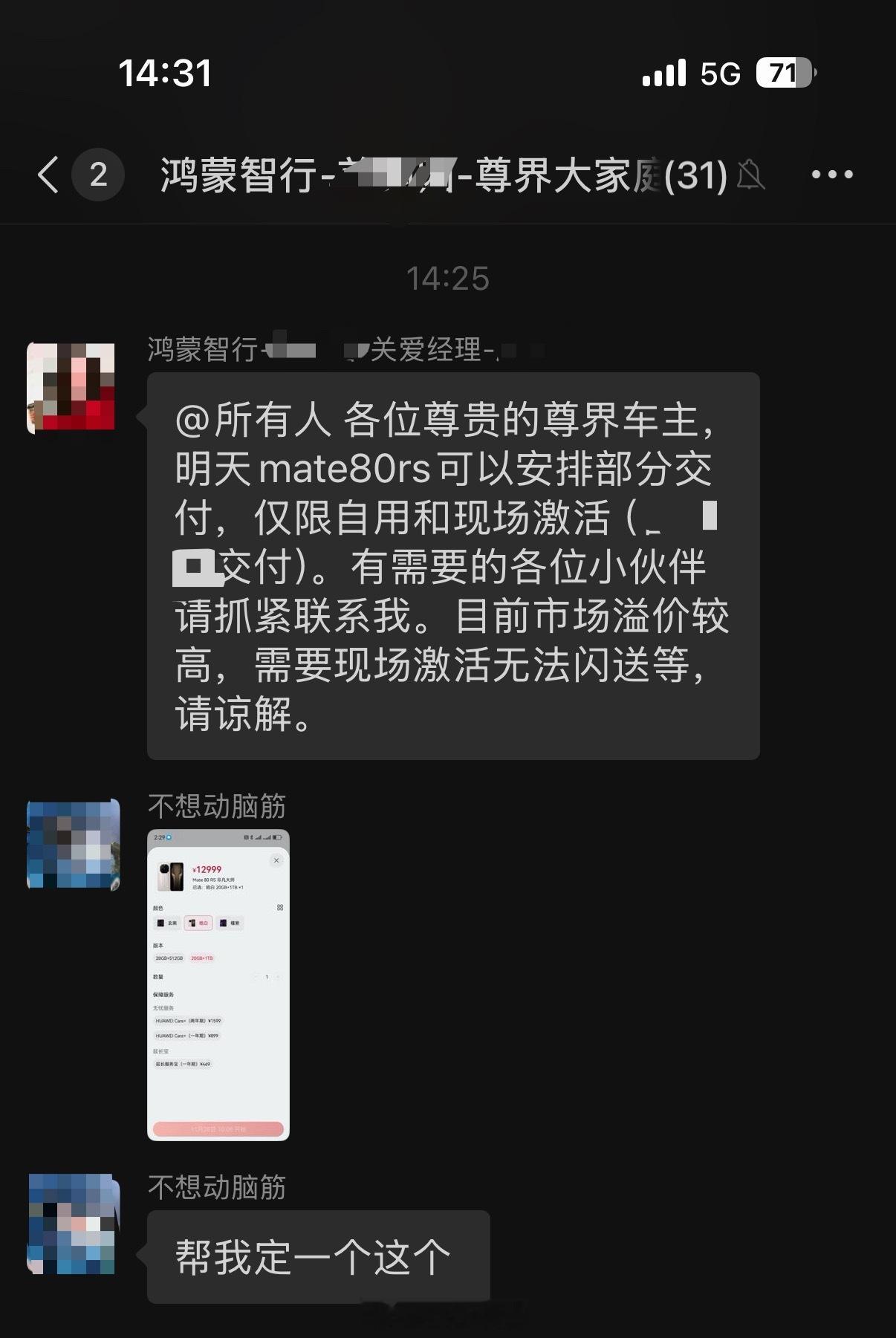 尊界S800 车主的福利又增加了给我交付尊界的门店,可以给尊界车主提供华为手机的优先购买权限。预定Mate 80 RS、Mate X7等旗舰机型,优先锁定上市后的首批货源