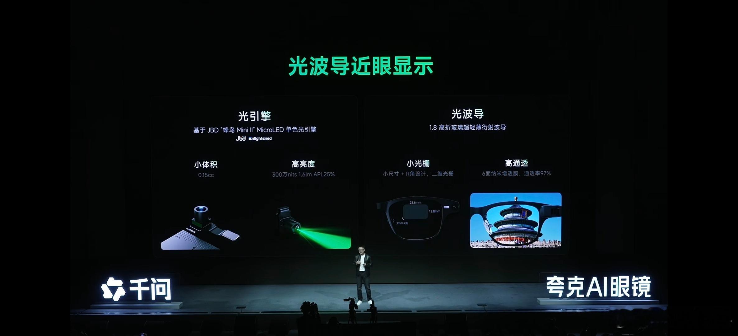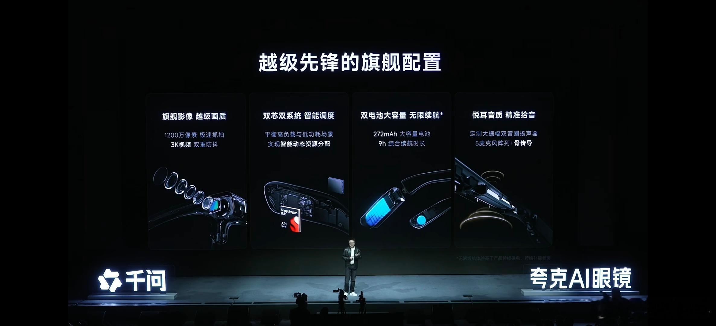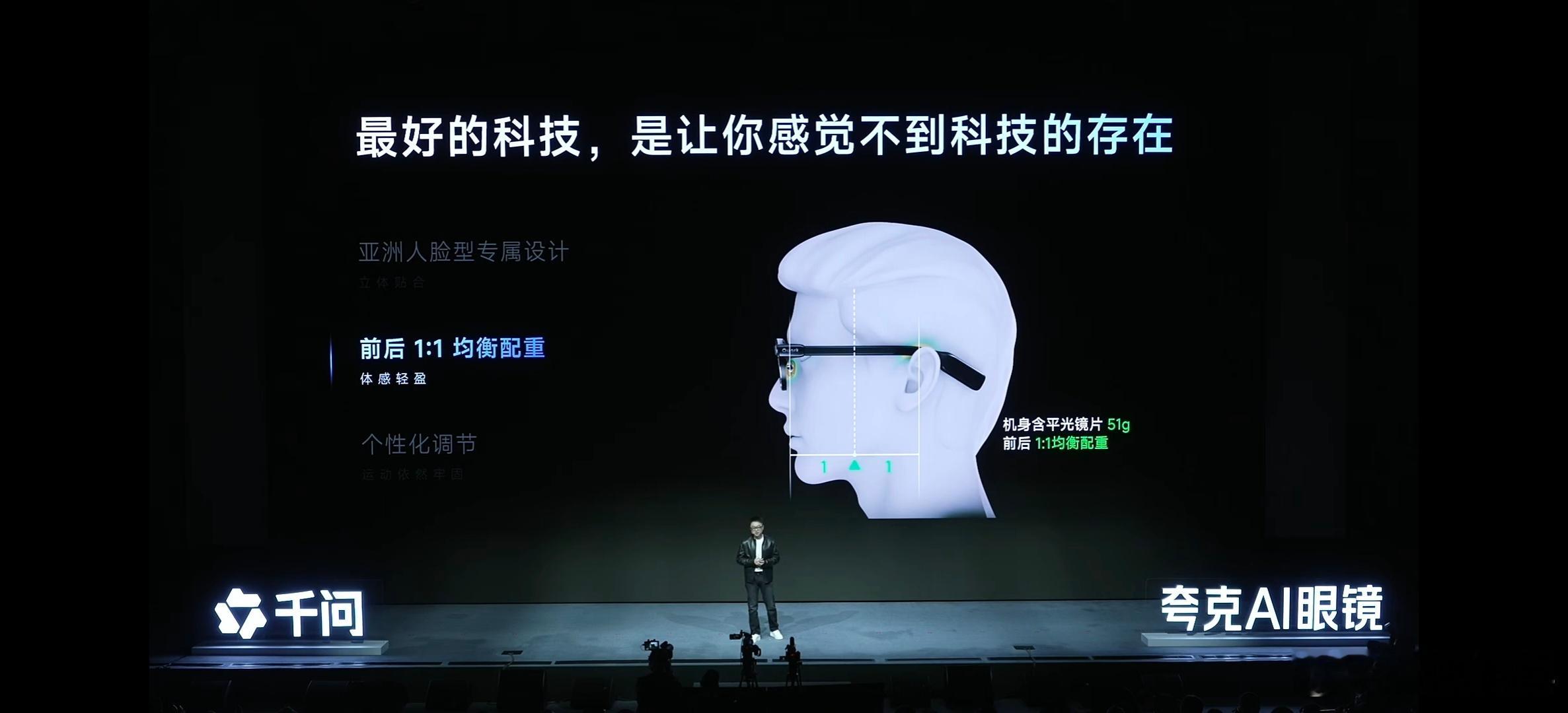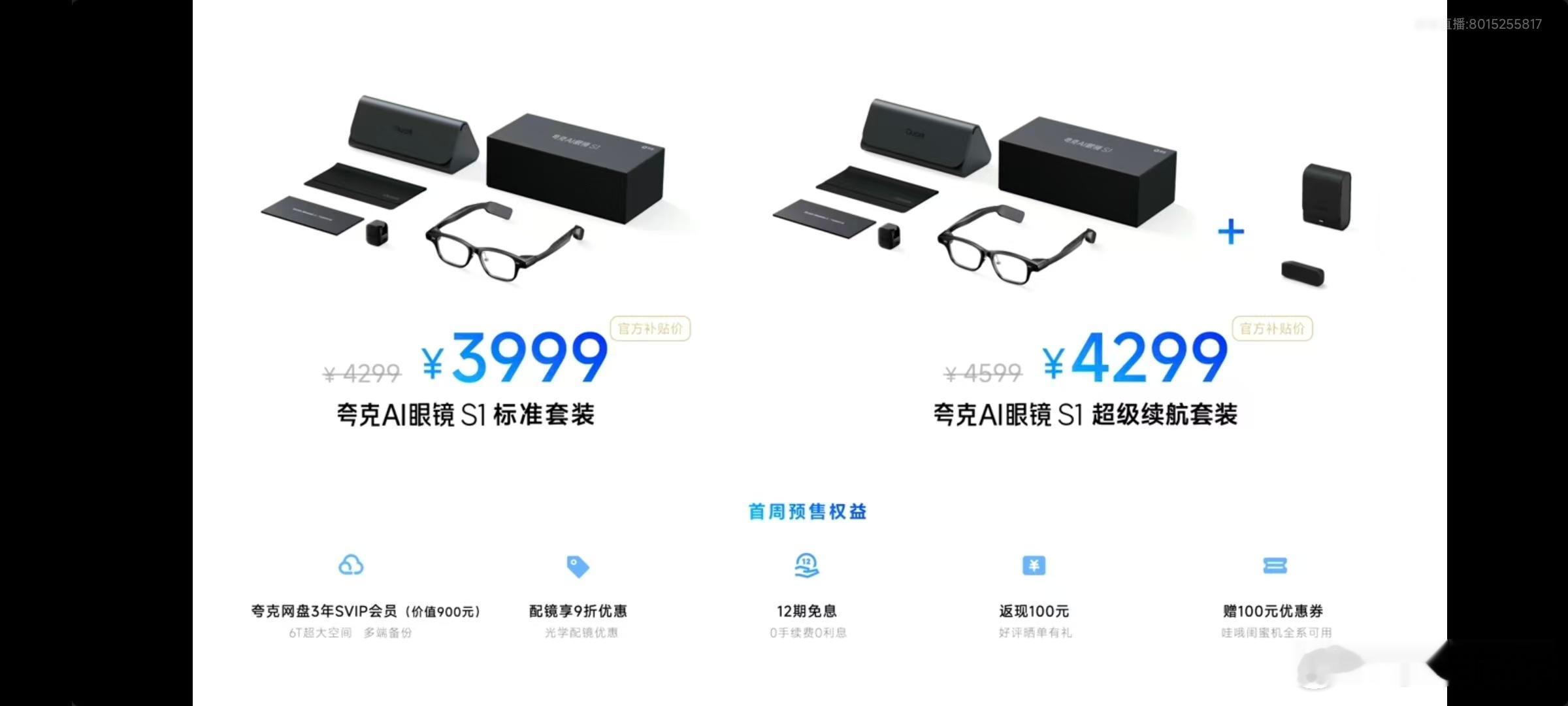 夸克AI眼镜带来的行业利好 下午看了夸克发布的AI眼镜,有几点非常打动我。首先是针对近视眼的用户,它做了定制的超薄镜片和专业一体化的贴合方案,保障轻盈的同时,还能做到通透显示降低视觉疲劳。而且眼镜的重心设计在镜腿处,佩戴后能够牢牢的夹在耳朵上,不会有脱落的问题。第二点是夸克AI眼镜内置云台做到双重防抖,比如我们在平时跑路的过程中佩戴,录视频不会有明显的晃动,成片率很高。第三点就是提供了多种充电方式,包括眼镜盒充电、充电仓和数据线,它的电池配备在镜腿的末端,可以拆卸下来单独给电池充电,就方便很多。在早些时候的预售中,夸克AI眼镜S1就登顶了天猫XR设备榜TOP1,是一款关注度非常高的智能眼镜,官方上市定价3999元起。在发布会的最后,夸克还把上下游合作伙伴都叫上台一起启动了产业生态联盟,通过上下游的共同努力一起来推动这个行业的进步,未来可能我们每个人鼻梁上带的都会是一款AI智能眼镜。