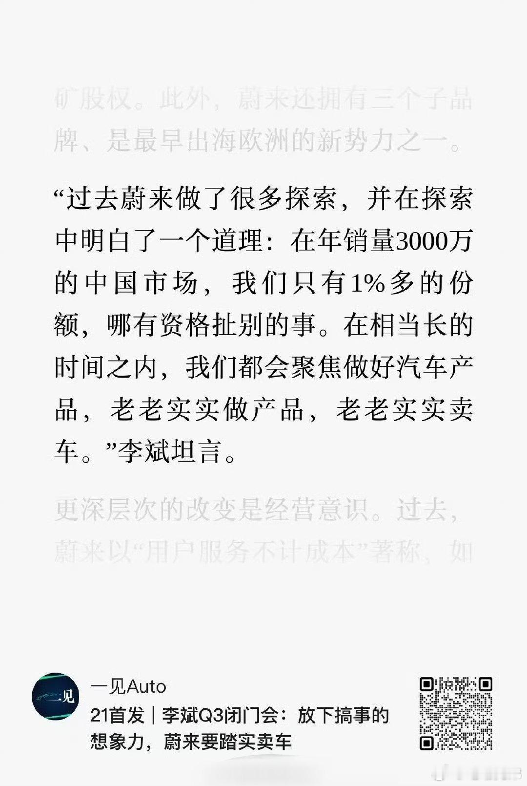蔚来当前对ai提及特别有限,就想把车卖好,很有意思。电动兄弟