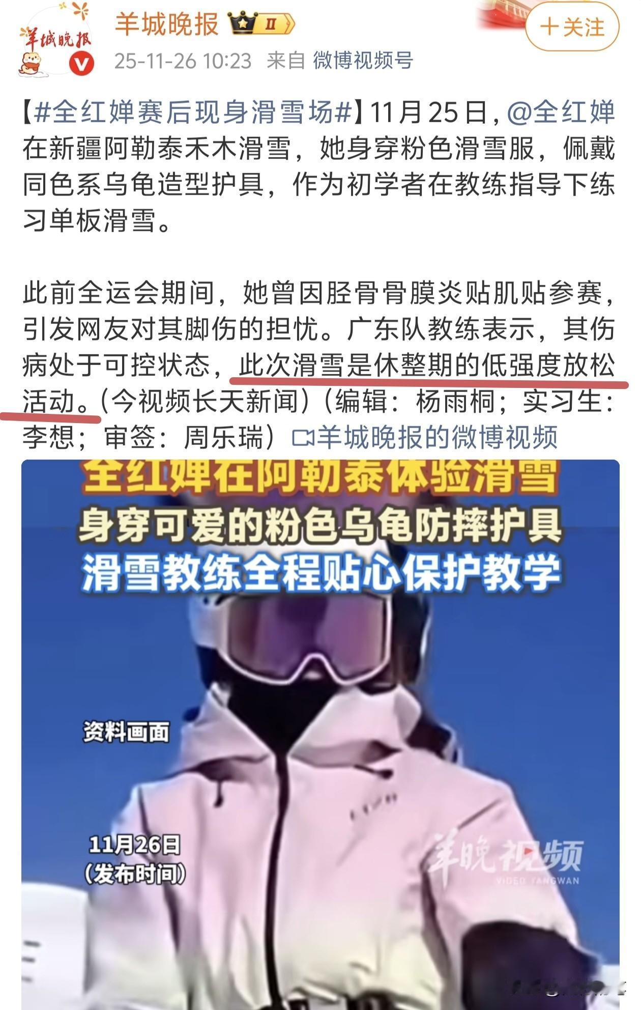 全红婵去滑雪也是为了跳水? 目前全红婵已经在新疆滑雪三天了,很多粉丝都担心全红婵脚上的伤恢复得怎样,面对大家关心的问题,广东跳水队的教练透露全红婵的伤病可控,去滑雪是假期低强度的放松活动。这样看来,感觉全红婵去滑雪一方面是自己喜欢,另一方面也是教练建议的。目前全红婵因为脚伤不适合长时间跳水练习,所以只有寻找一项运动来保持肌肉的强度,以及有利于体重的控制。所以,滑雪顺其自然就成为了全红婵的首选,而且经过三天的练习,全红婵自己已经可以很丝滑的单独滑雪了,这一趟全红婵又会学多了一项体育运动,真的是一举两得。